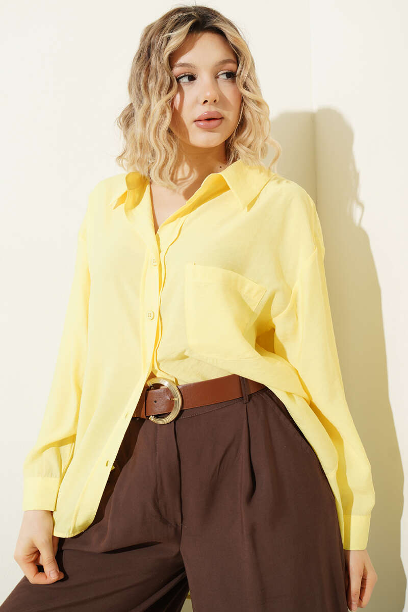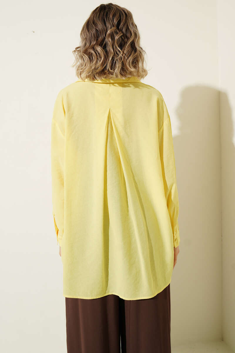 Yaka Cepli Oversize Gömlek Acı Kahve