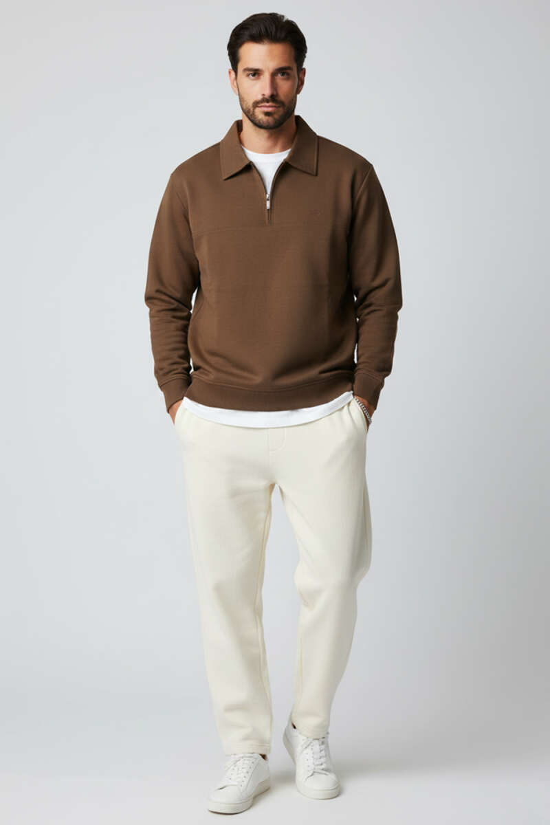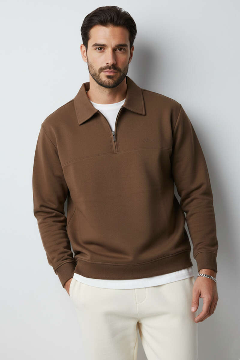 Yaka Change Yazılı Erkek Sweatshirt Kahve