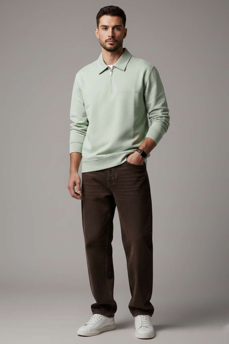 Yaka Change Yazılı Erkek Sweatshirt Su Yeşili