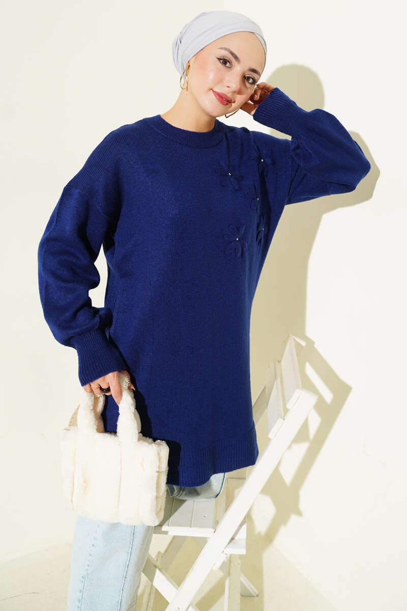 Yan Yırtmaçlı Yumoş Uzun Triko Tunik Lacivert