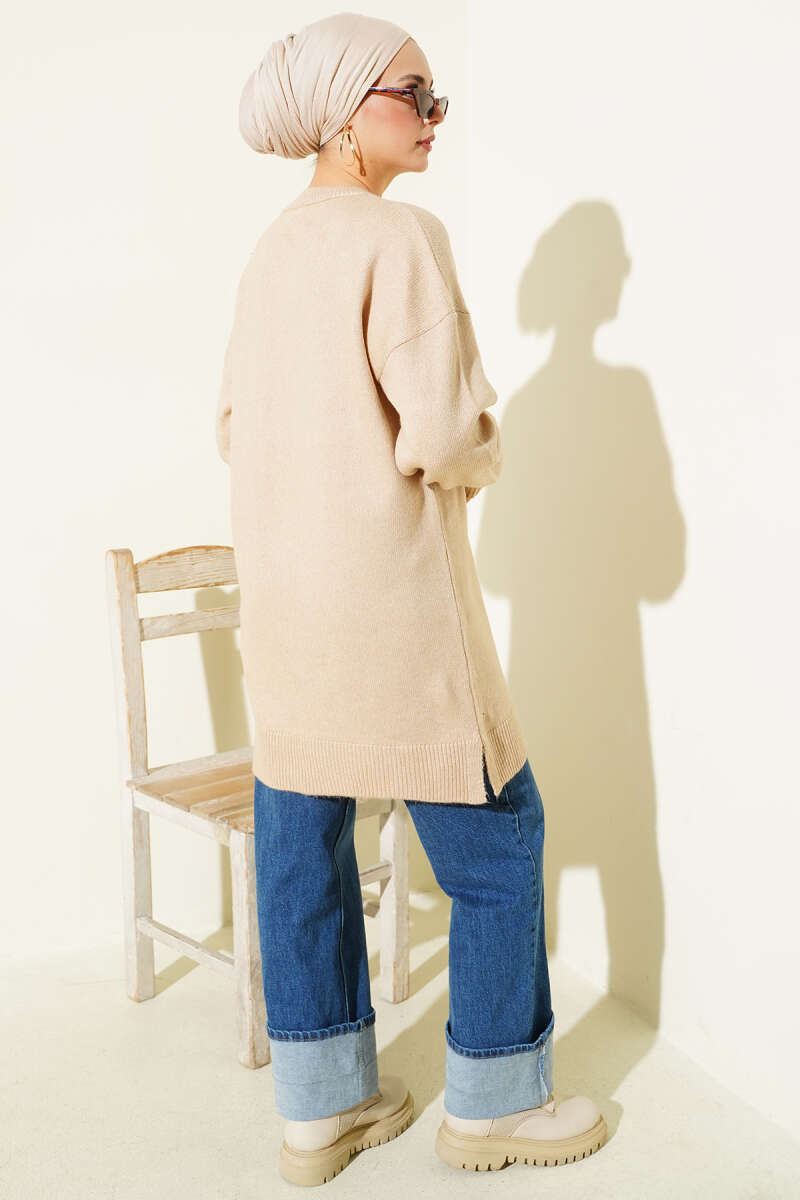 Yan Yırtmaçlı Yumoş Uzun Triko Tunik Latte