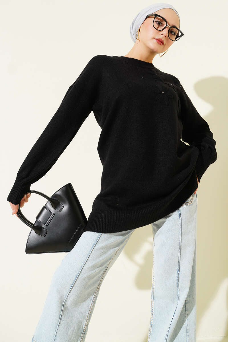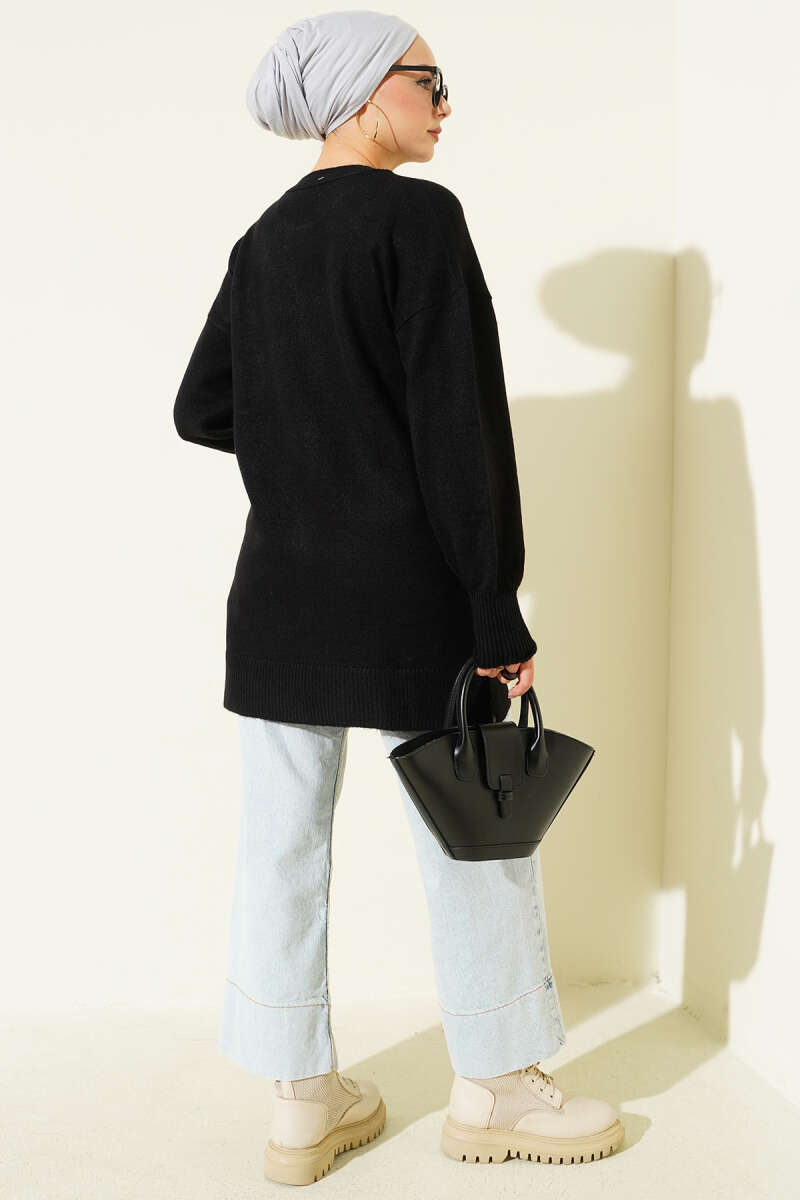 Yan Yırtmaçlı Yumoş Uzun Triko Tunik Siyah