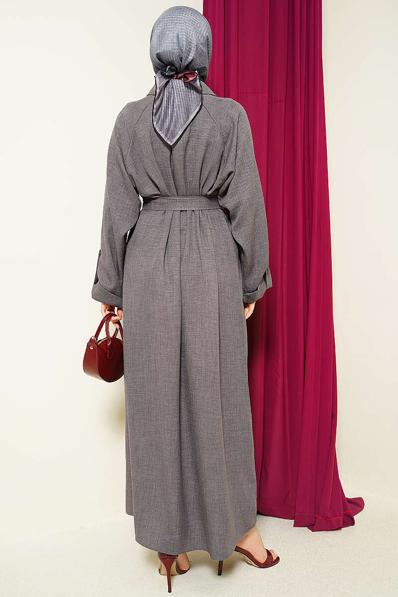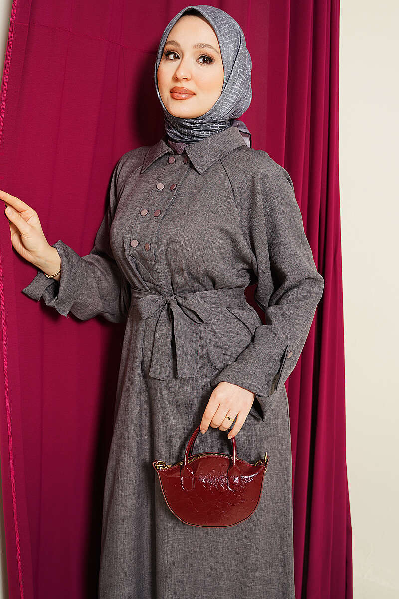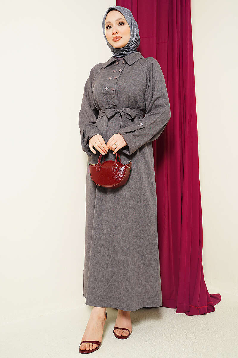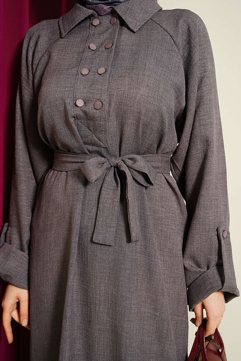 Yarım Düğmeli Dantelli Abiye Elbise Kahve