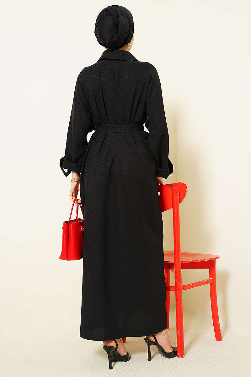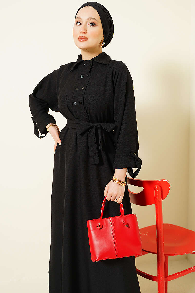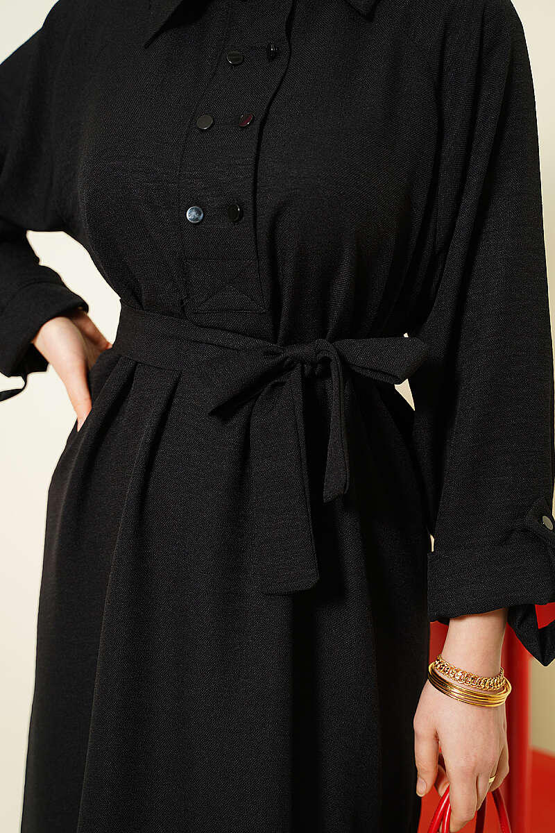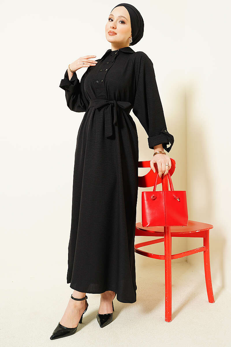 Yarım Düğmeli Dantelli Abiye Elbise Siyah