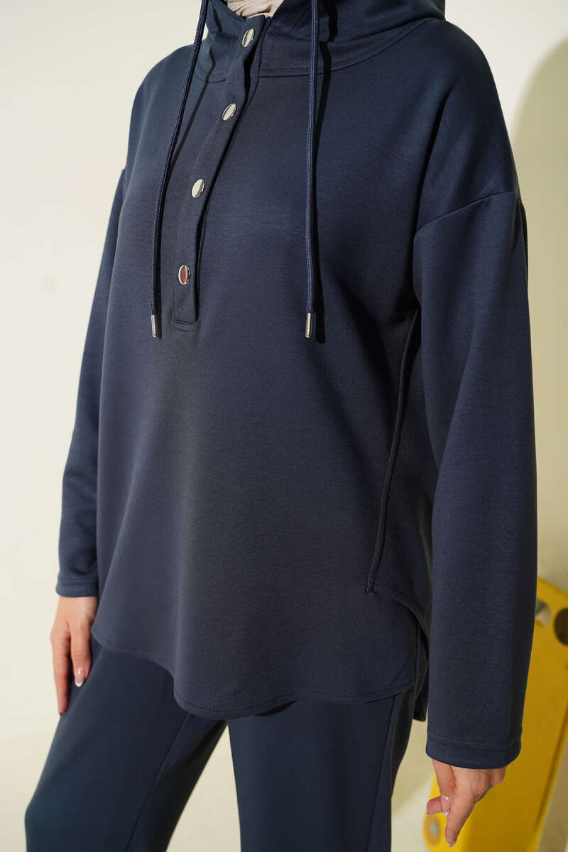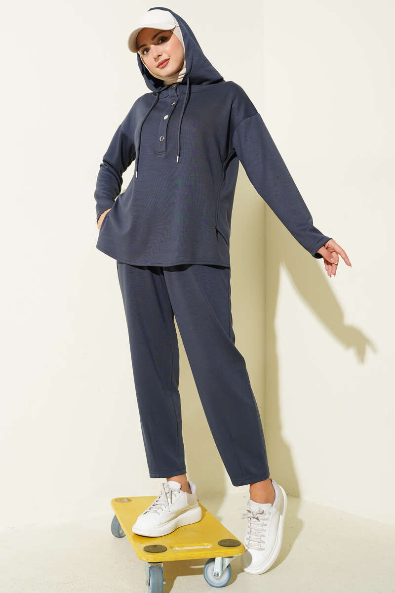Yaka Çıtçıtlı Kapüşonlu İkili Takım Siyah