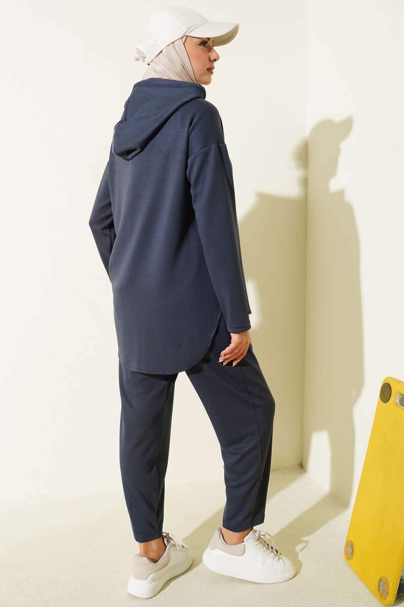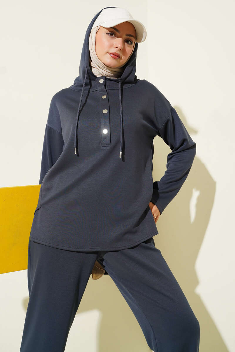 Yaka Çıtçıtlı Kapüşonlu İkili Takım Mor