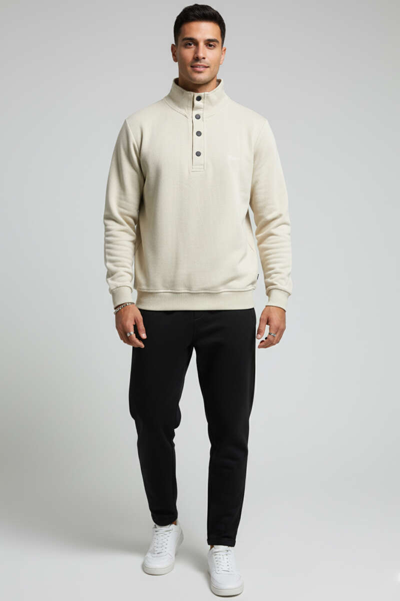 Bisiklet Yaka Üç İplik Sweatshirt Ekru
