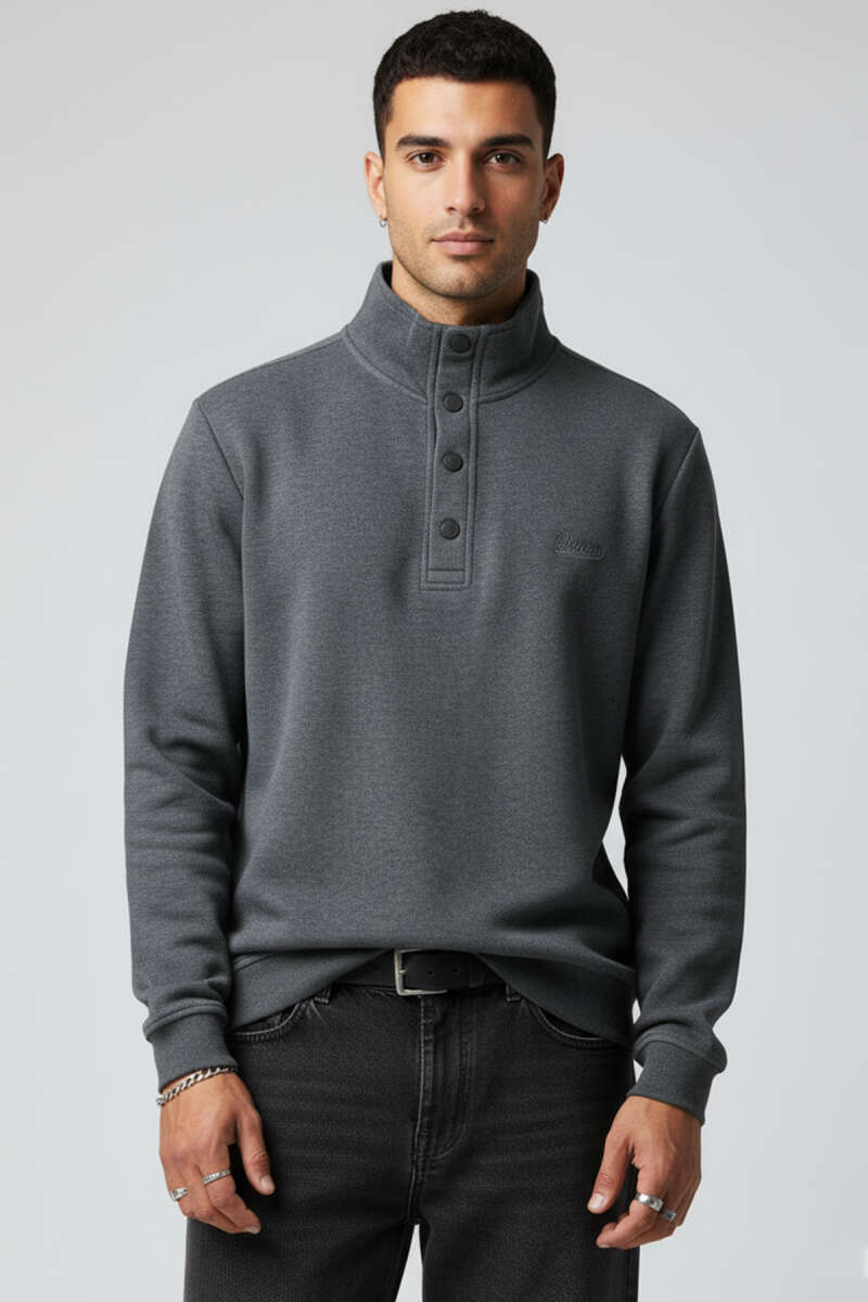 Üç İplik Yarım Çıtçıtlı Sweatshirt Gri