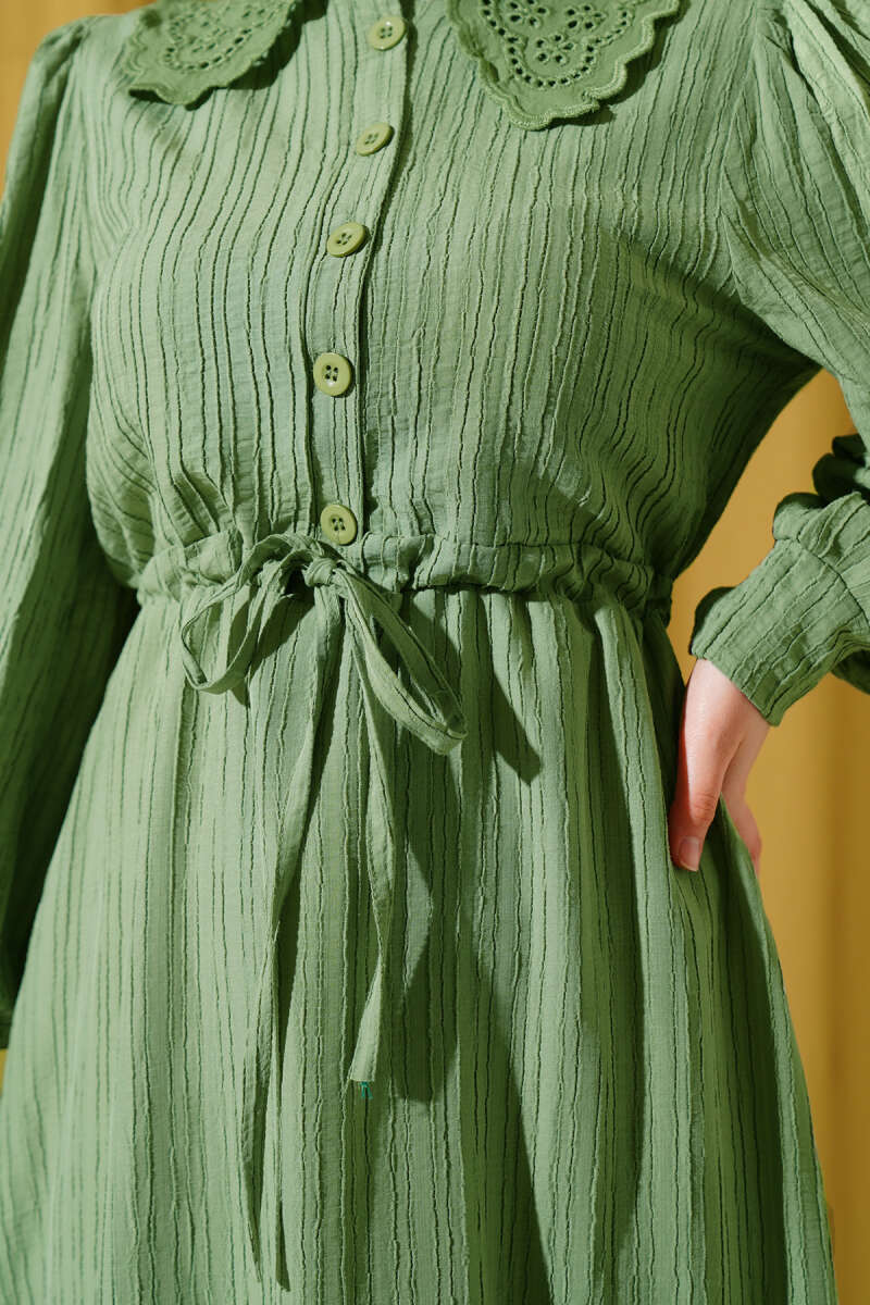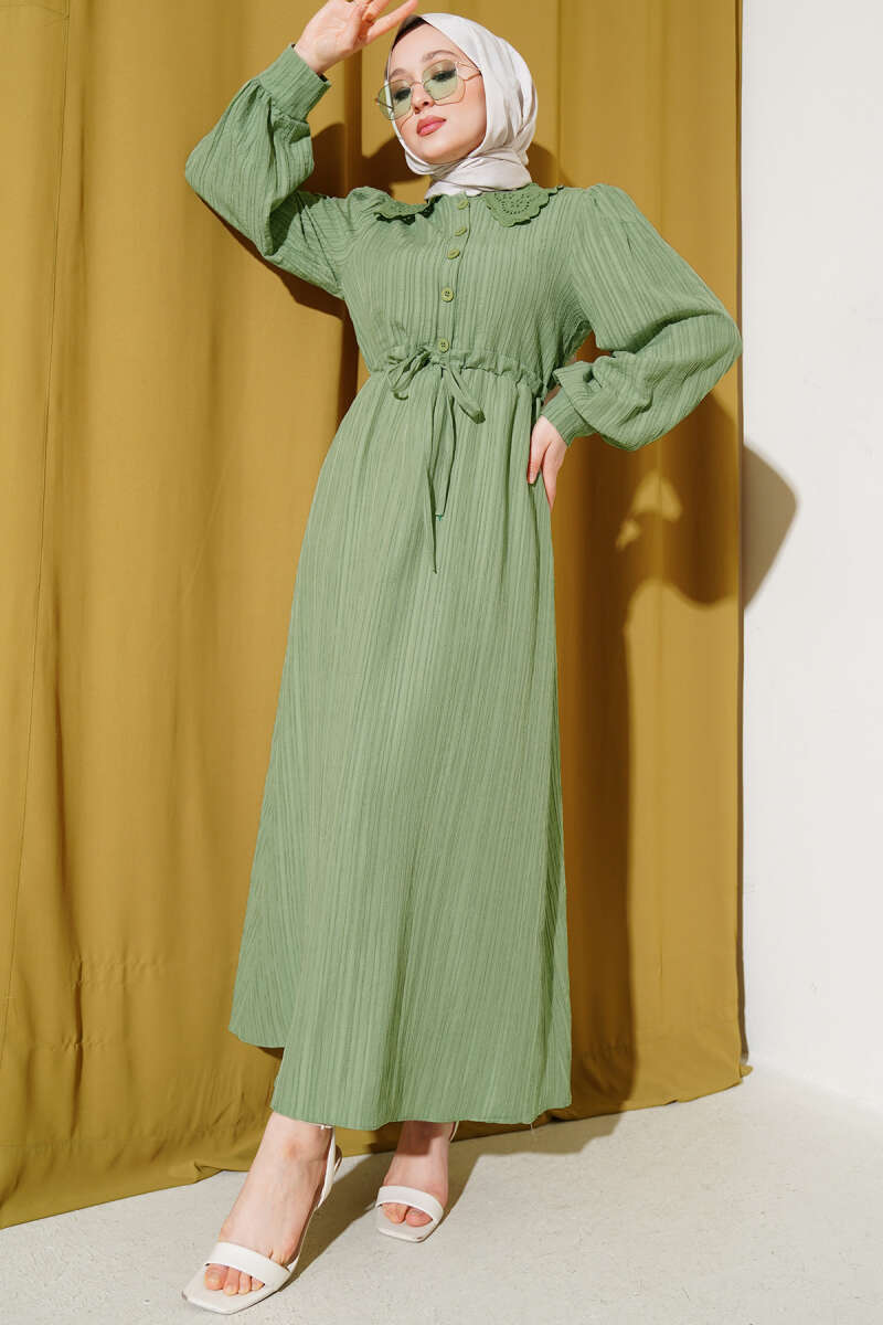 Duble Kol İp Bağcıklı Elbise Çağla Yeşili
