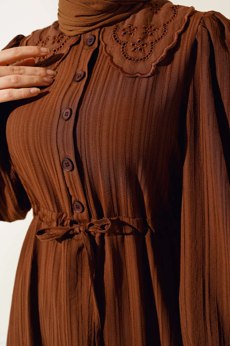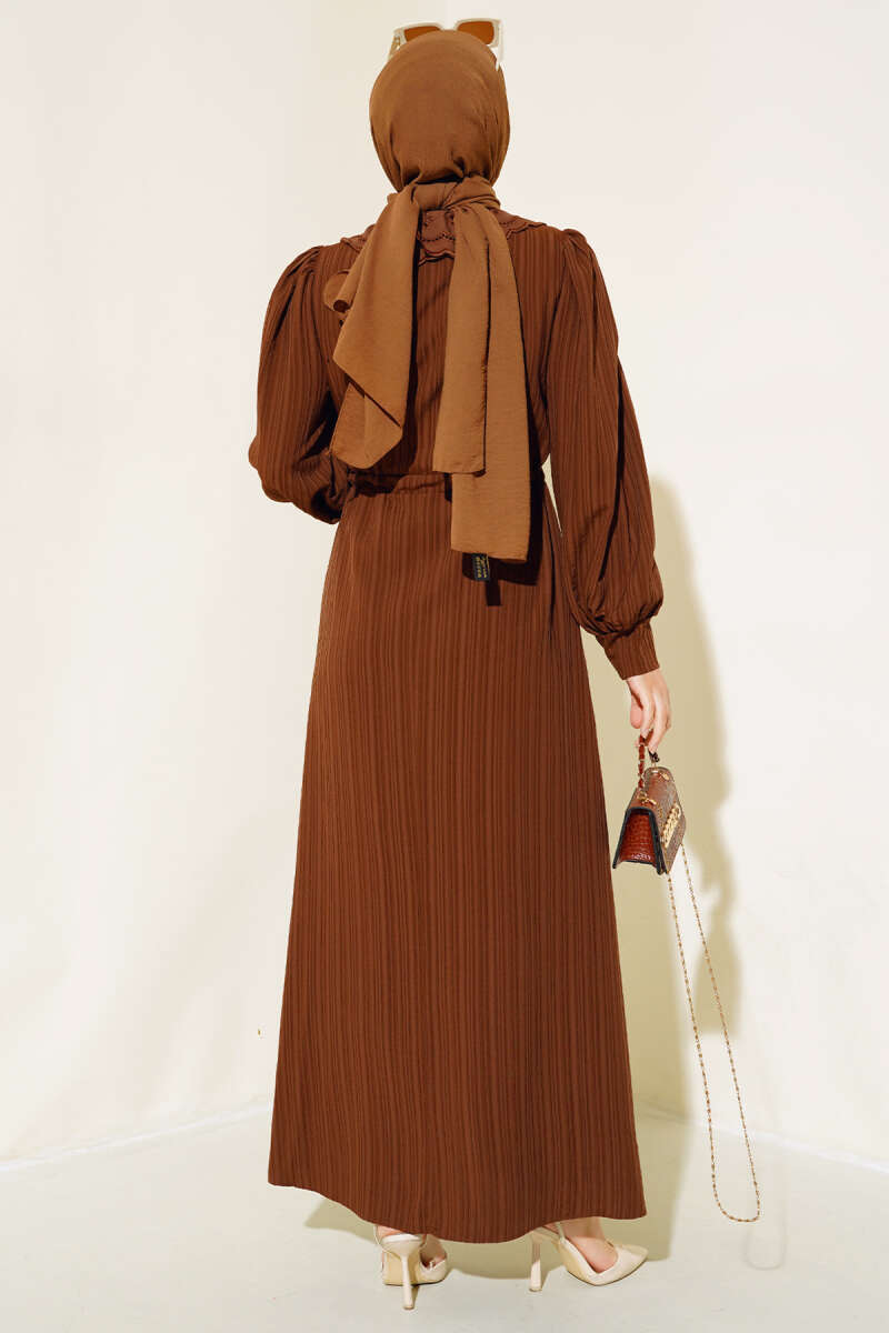 Bel Büzgü Detaylı Abiye Elbise Kahve