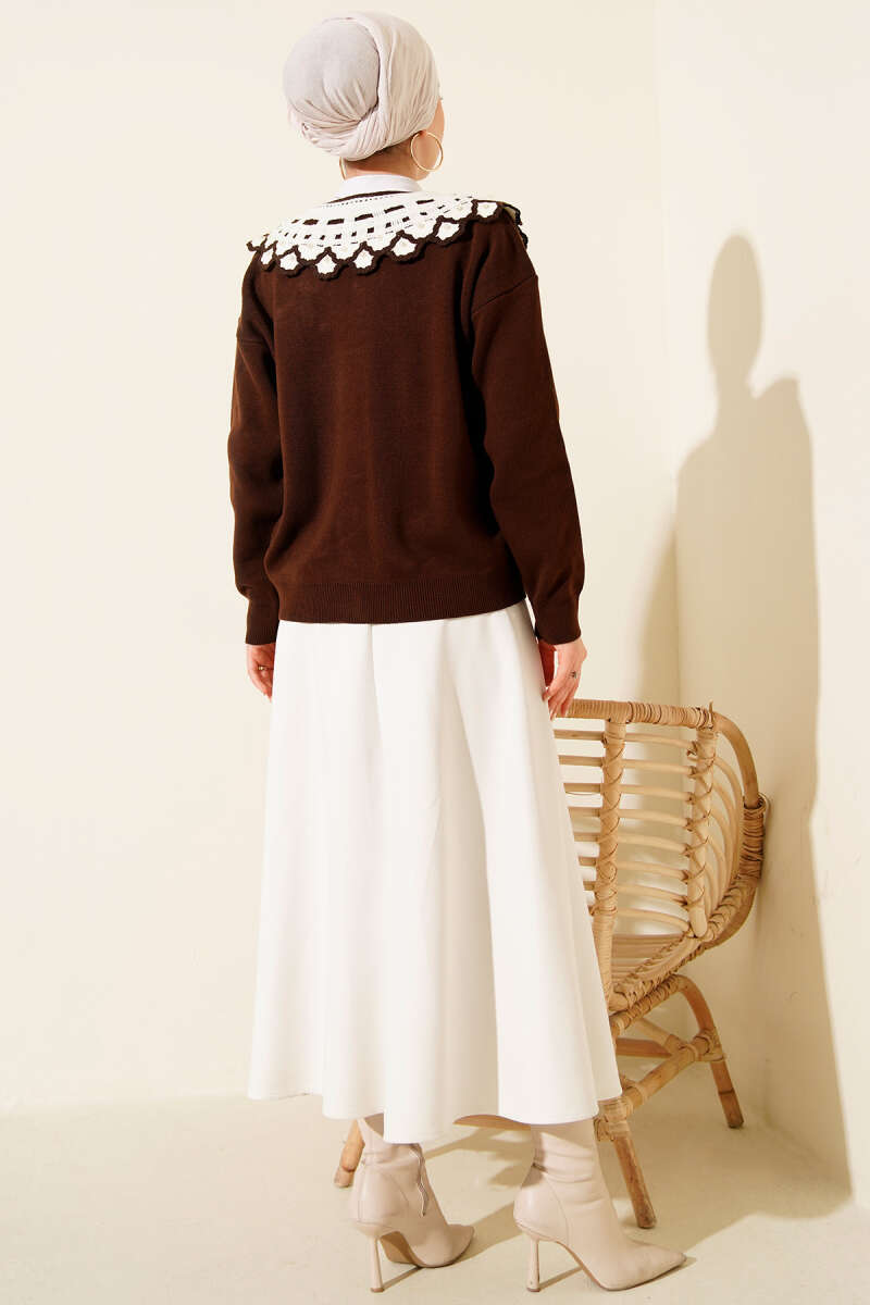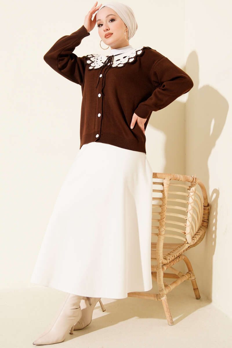 Yaka Dantelli Kısa Triko Hırka Bordo