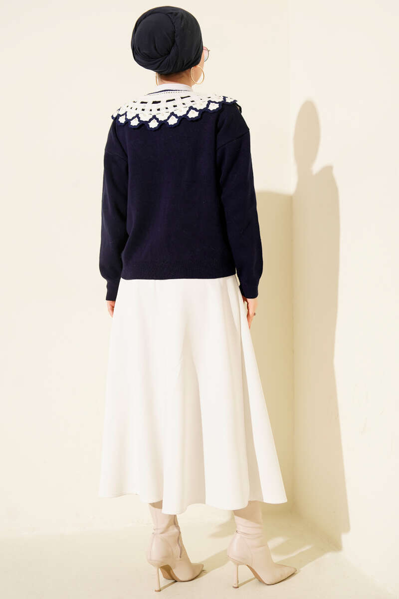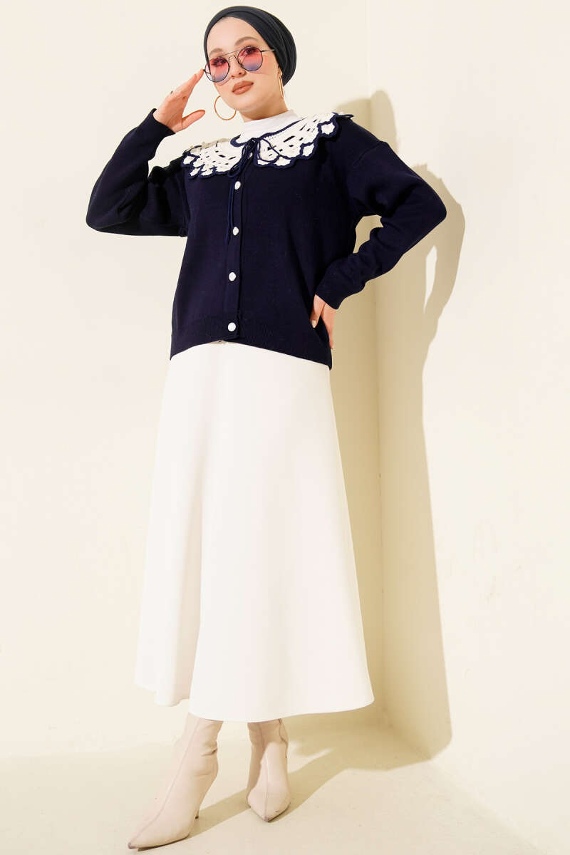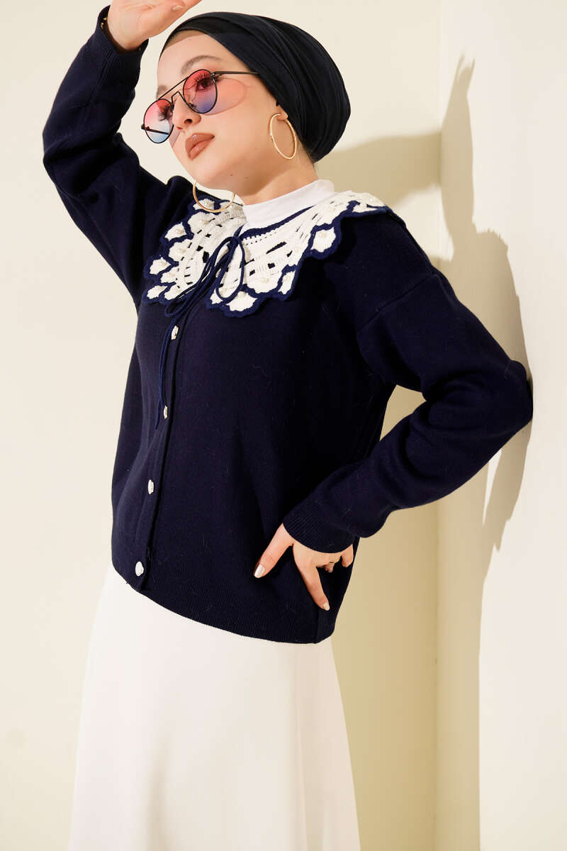 Yaka Dantelli Kısa Triko Hırka Siyah