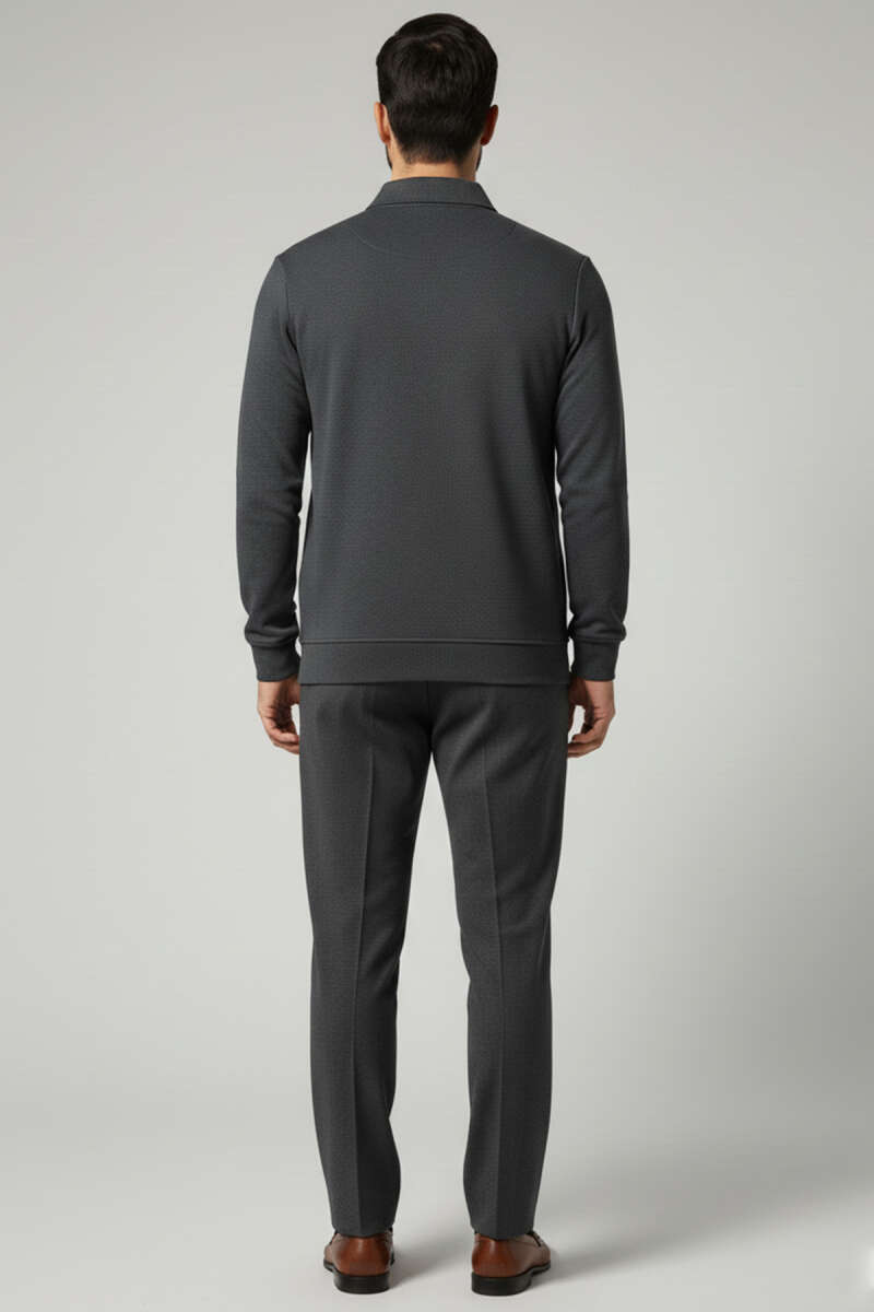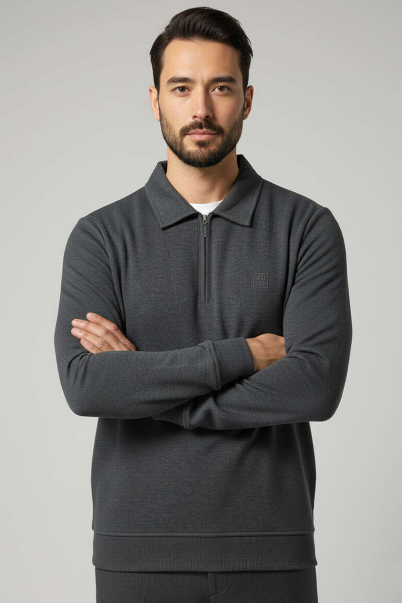 Yaka Detaylı Yarım Fermuar Selanik Erkek Sweatshirt Nefti