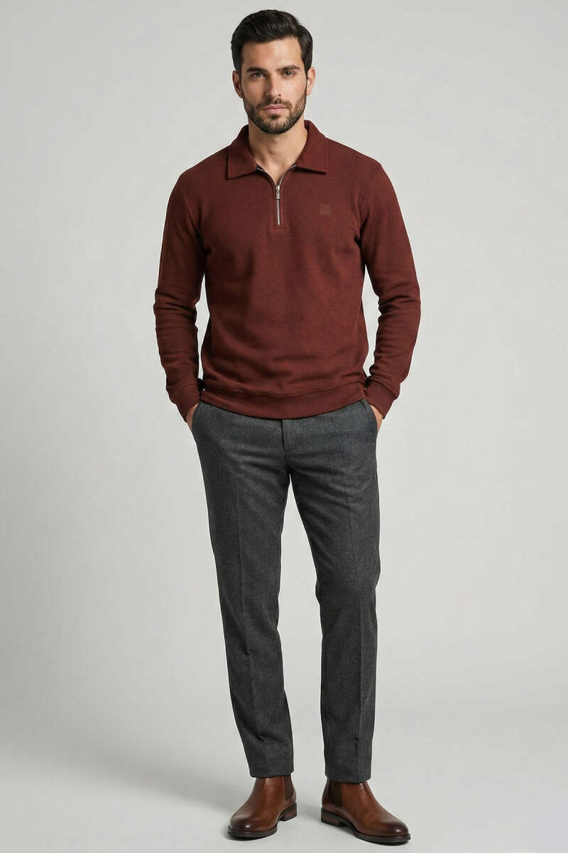 Yaka Detaylı Yarım Fermuar Selanik Erkek Sweatshirt Parlement