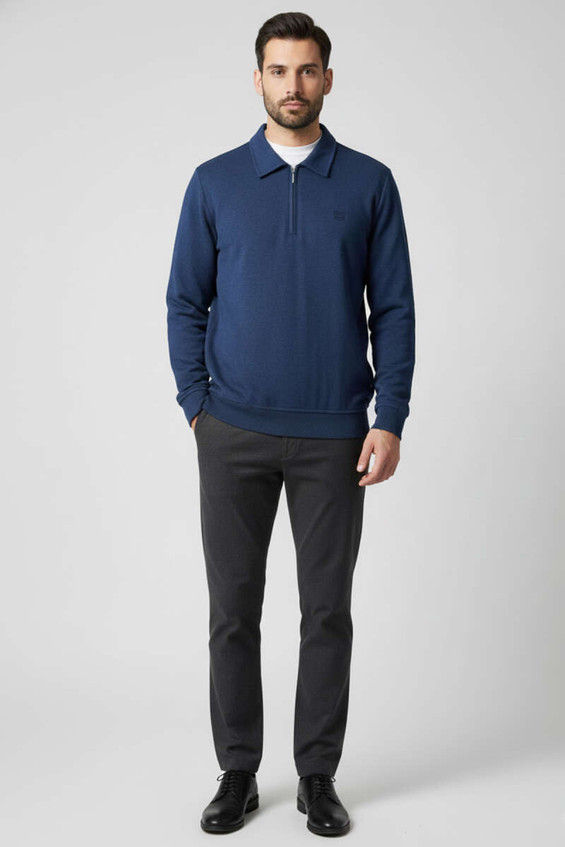 Yaka Detaylı Yarım Fermuar Selanik Erkek Sweatshirt Nefti