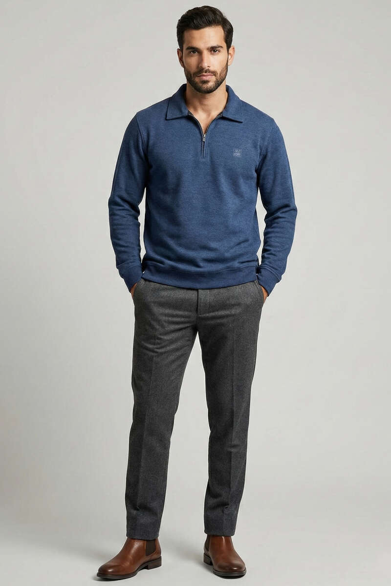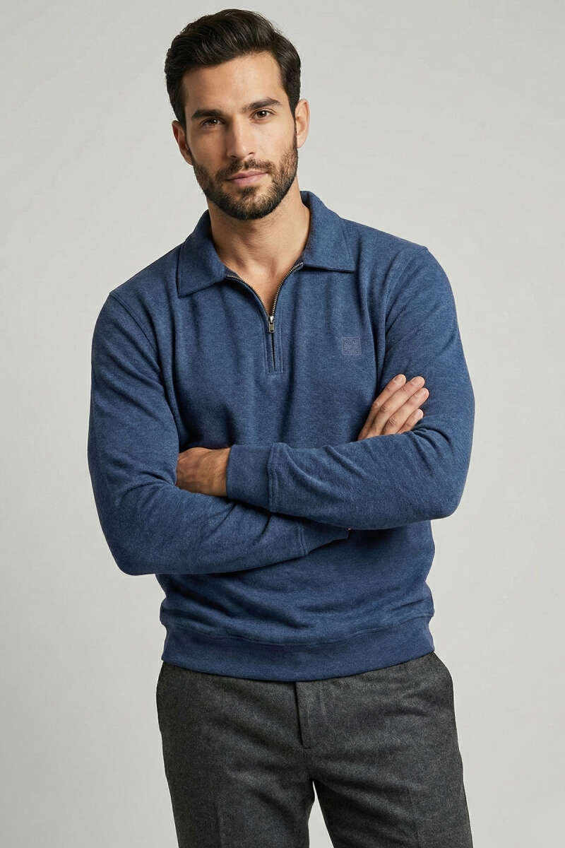 Yaka Detaylı Yarım Fermuar Selanik Erkek Sweatshirt Kiremit
