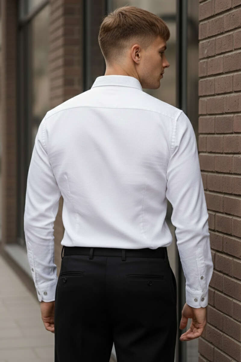 Slim Fit Pamuk Saten Erkek Gömlek Beyaz
