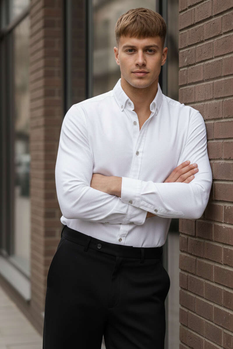 Yaka Düğmeli Erkek Spor Gömlek Beyaz