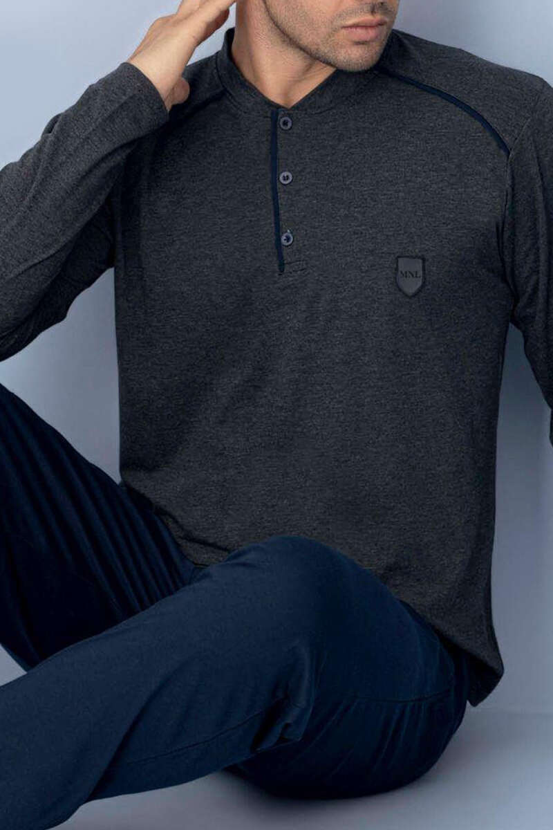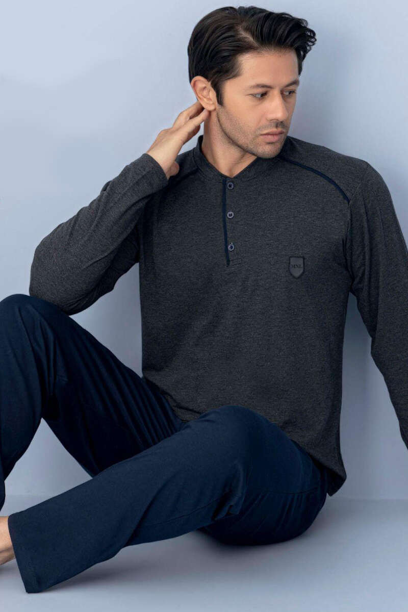 Yaka Düğmeli Biyeli Erkek Pijama Takımı Antrasit
