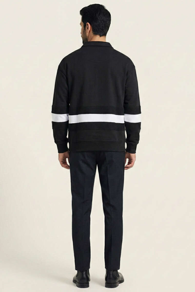 Şeritli Yaka Yazılı Erkek Sweatshirt Siyah