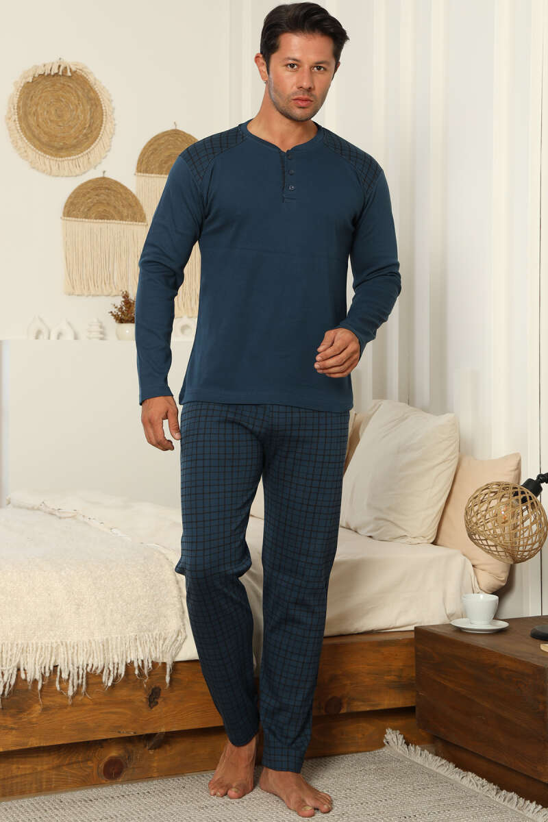 Yaka Düğmeli İnterlok Erkek Pijama Takımı İndigo