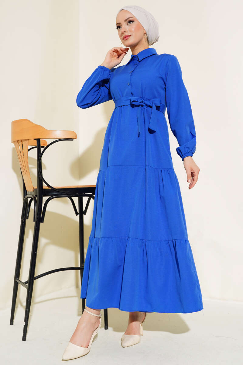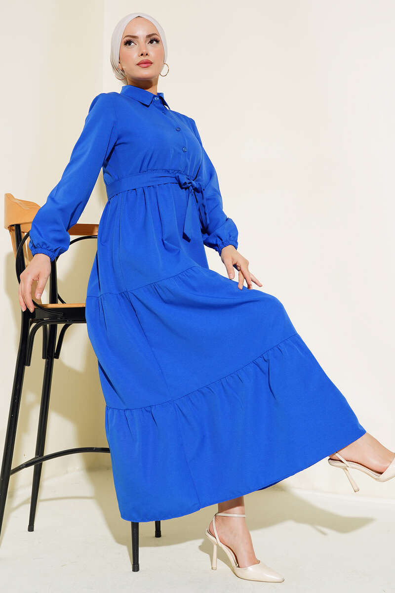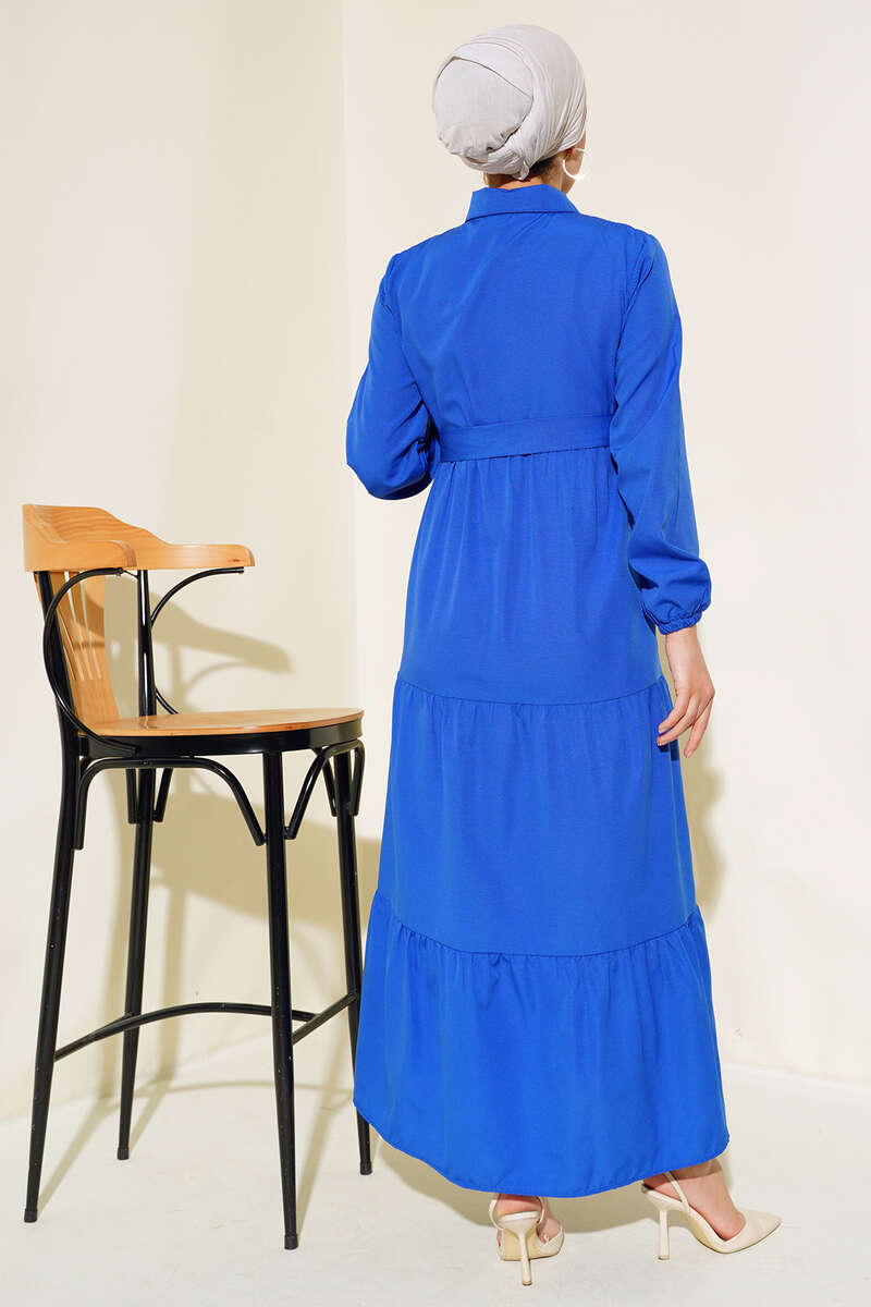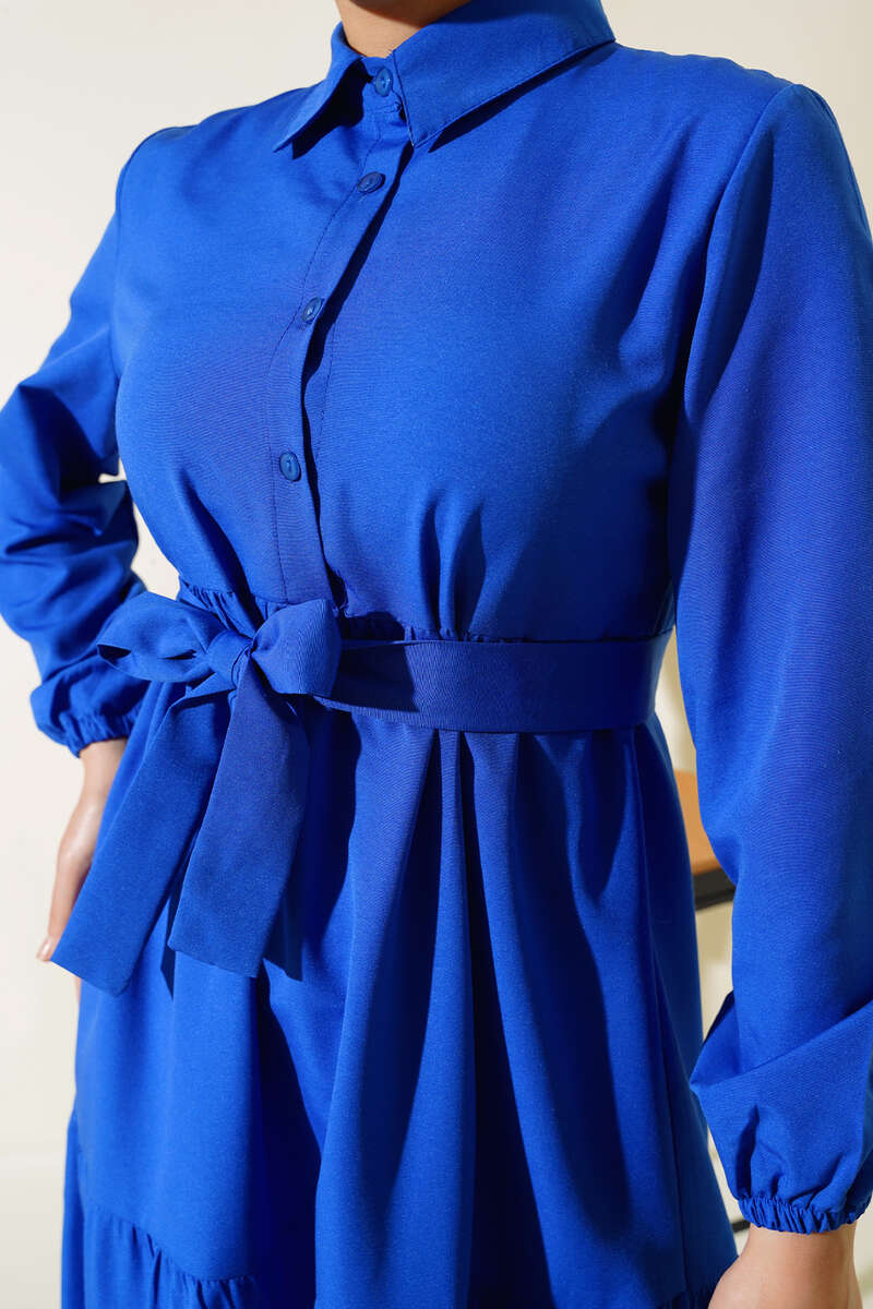 Yeni sezon elbisemiz kat kat modeldir. Elbisemizin bilekleri lastiklidir. Klasik yaka olan elbisemizin yakasına beş adet düğme eşlik etmektedir. Sportif şıklığı size sunan elbisemiz gündelik tarzınızda fark yaratmanızı sağlayacaktır.