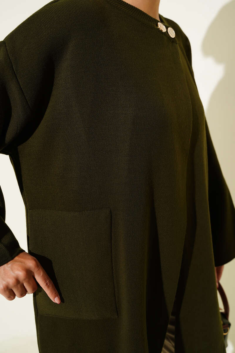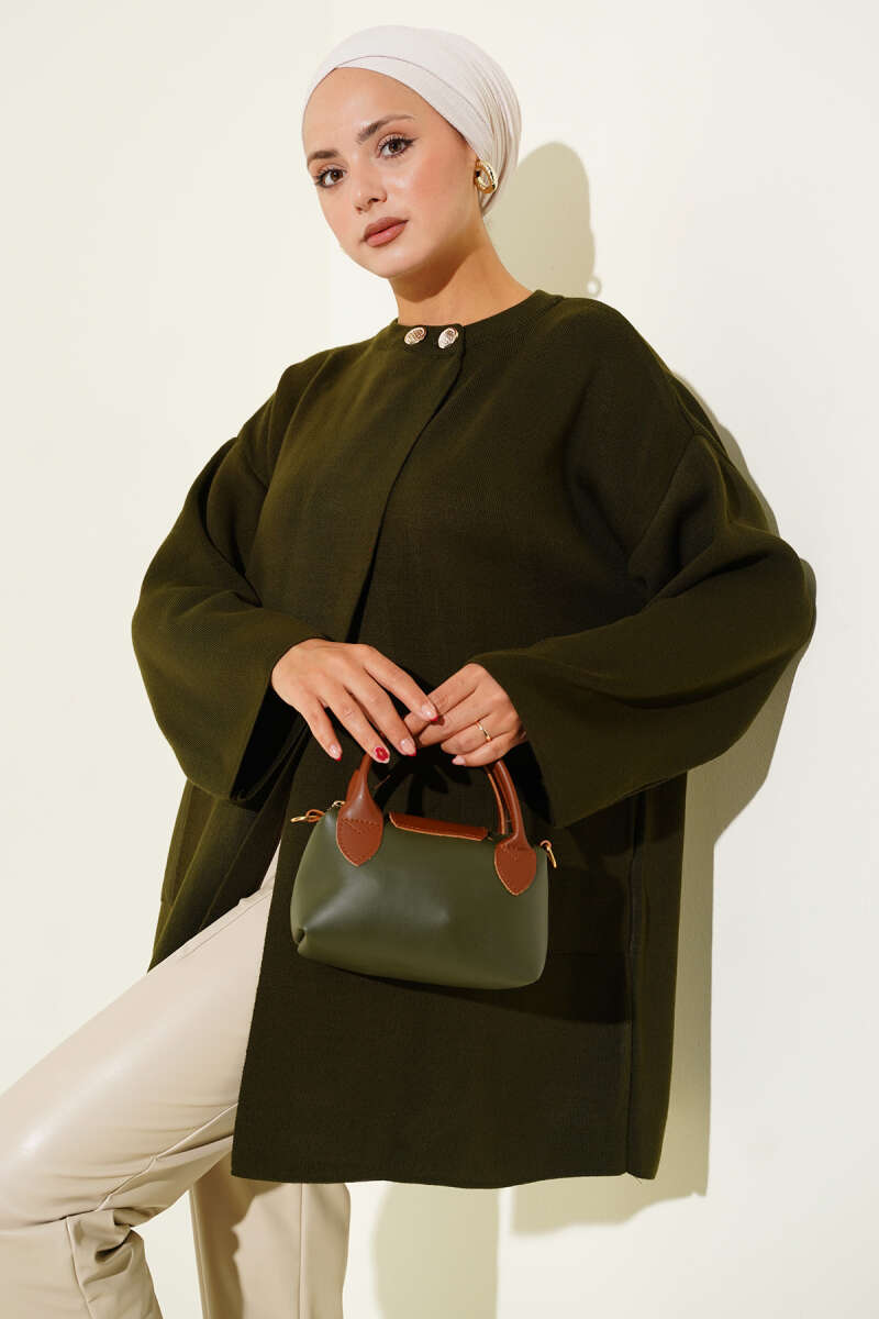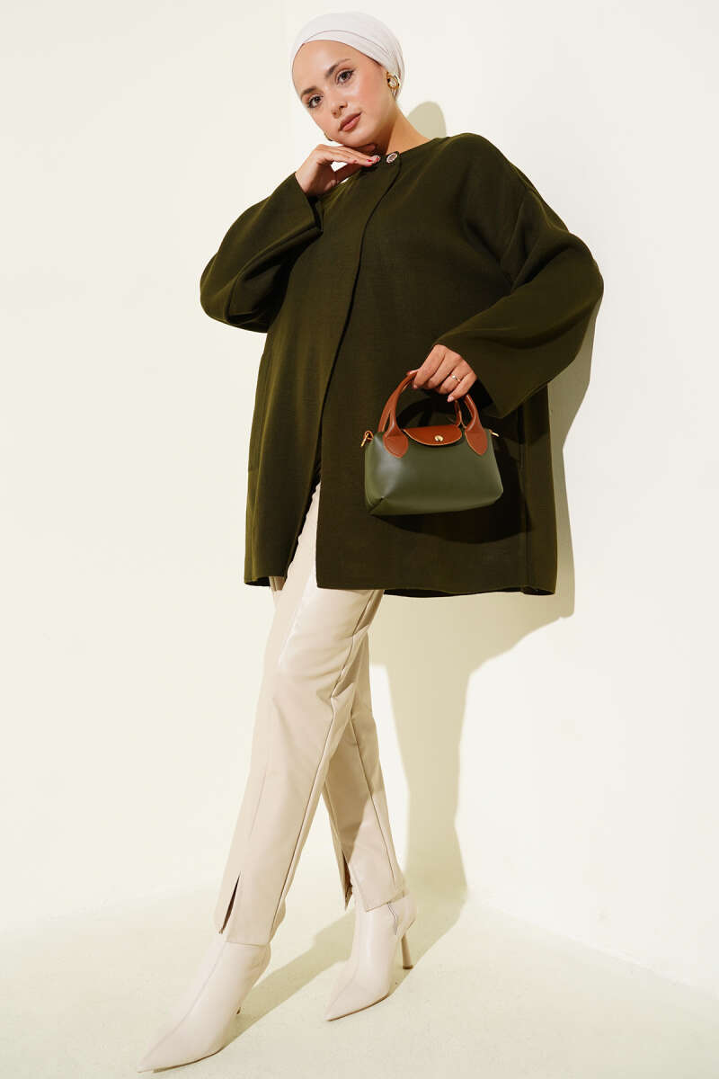 Gold Düğmeli Kaşe Panço Çağla Yeşili