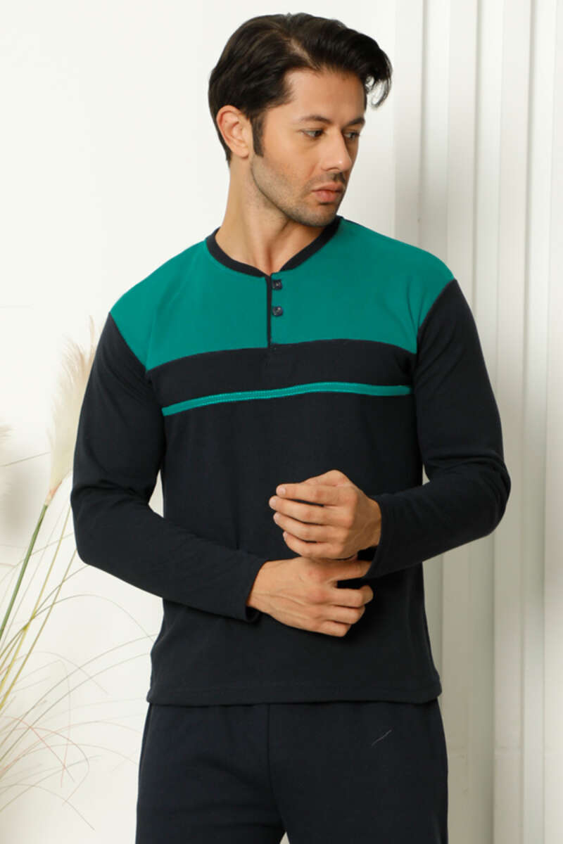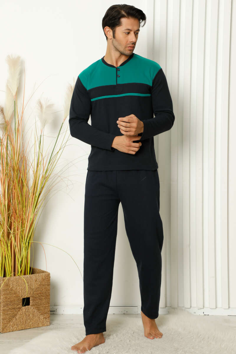 Yaka Düğmeli Uzun Kol Erkek Pijama Takımı Yeşil