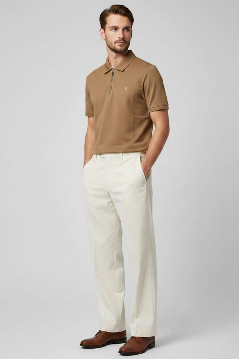Yaka Fermuarlı Armalı Erkek T-shirt Beyaz