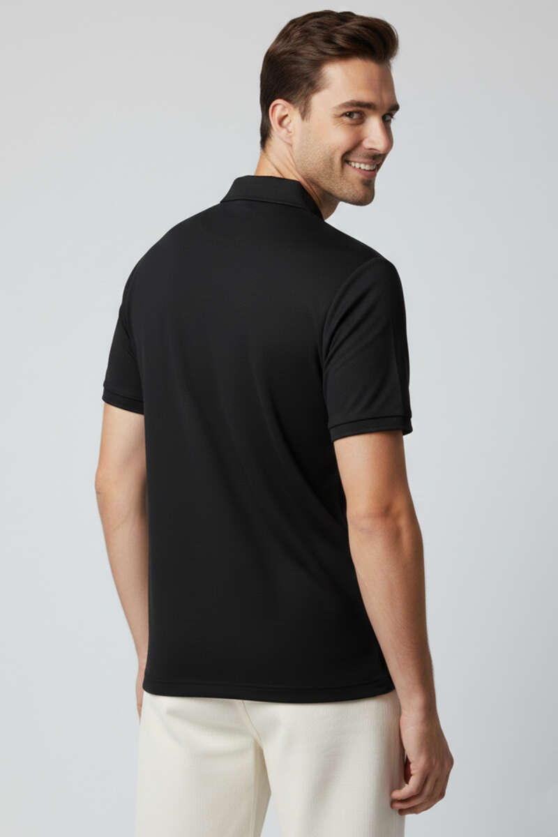 Polo Yaka Düğmeli Merserize T-Shirt Nefti