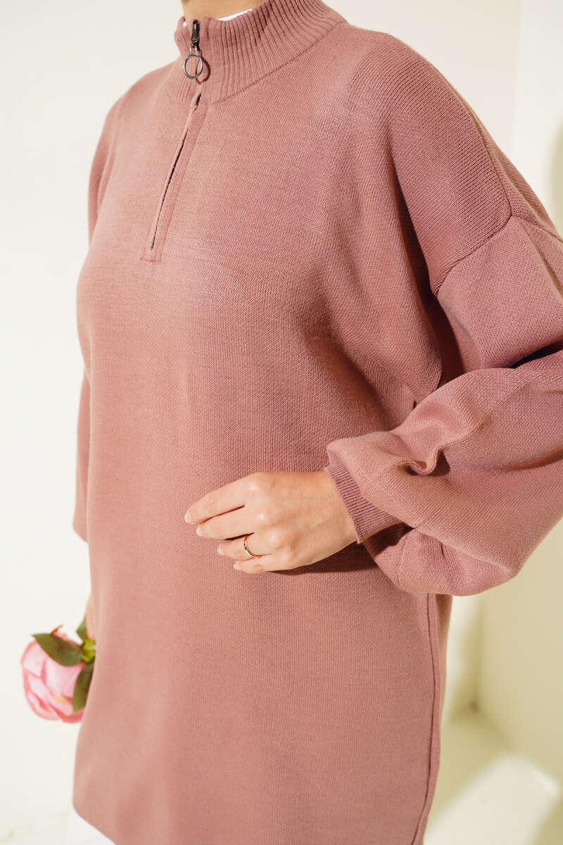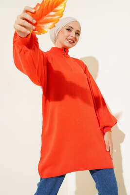 Çizgi Baklava Desen Triko Tunik Zümrüt