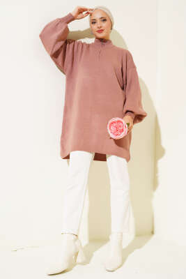 Çizgi Baklava Desen Triko Tunik Yağ Yeşili
