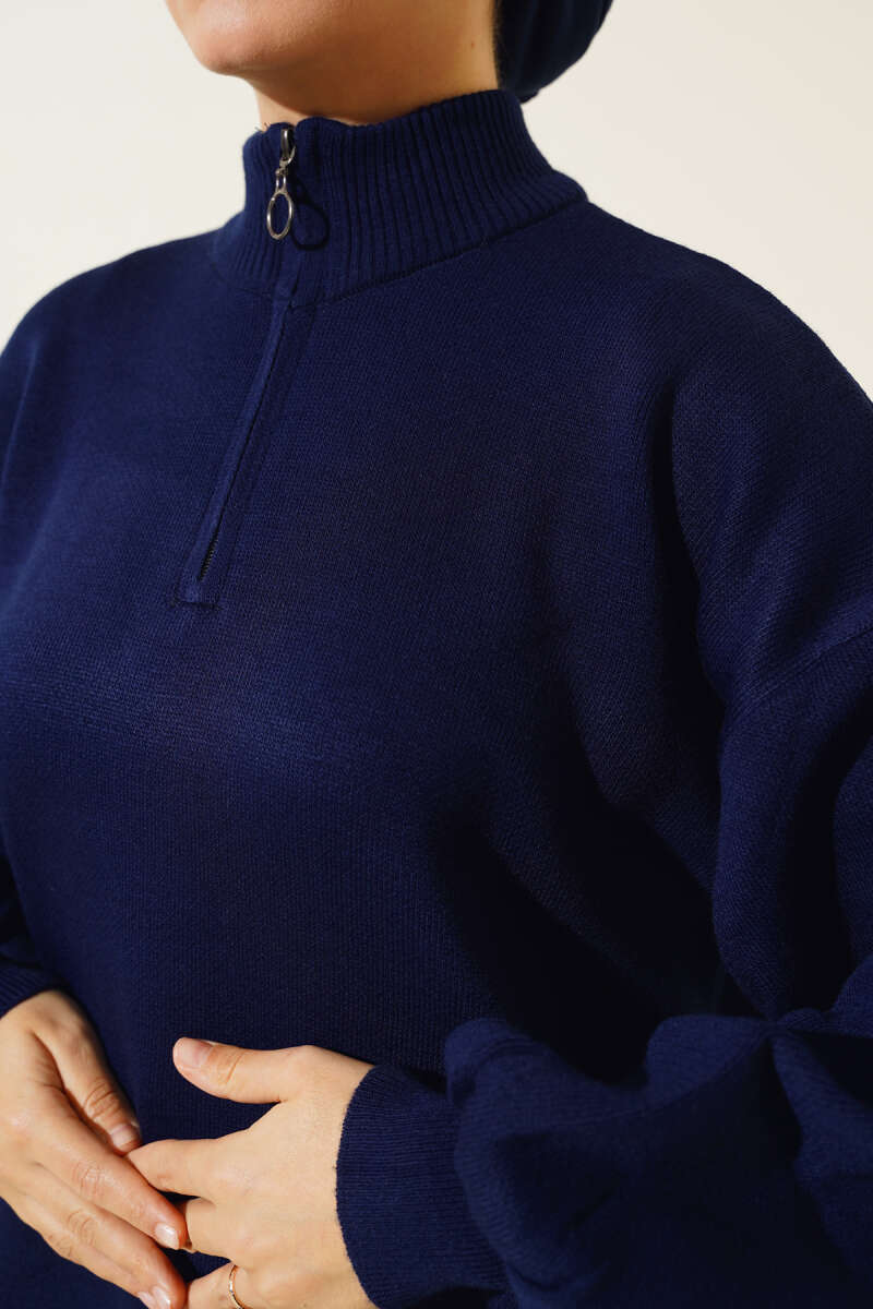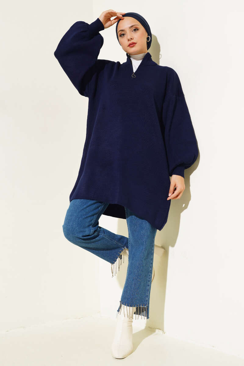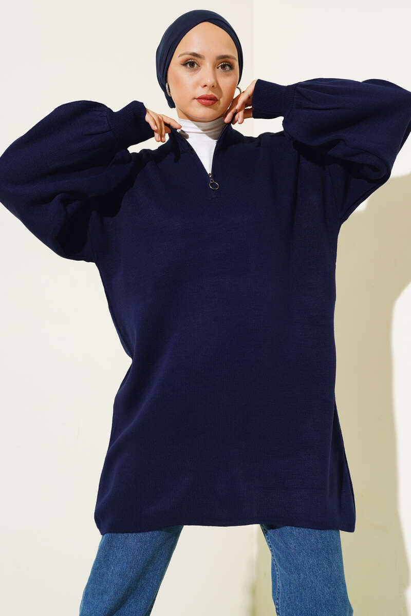 Düşük Omuz Salaş Triko Tunik Turkuaz