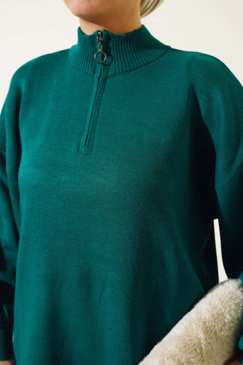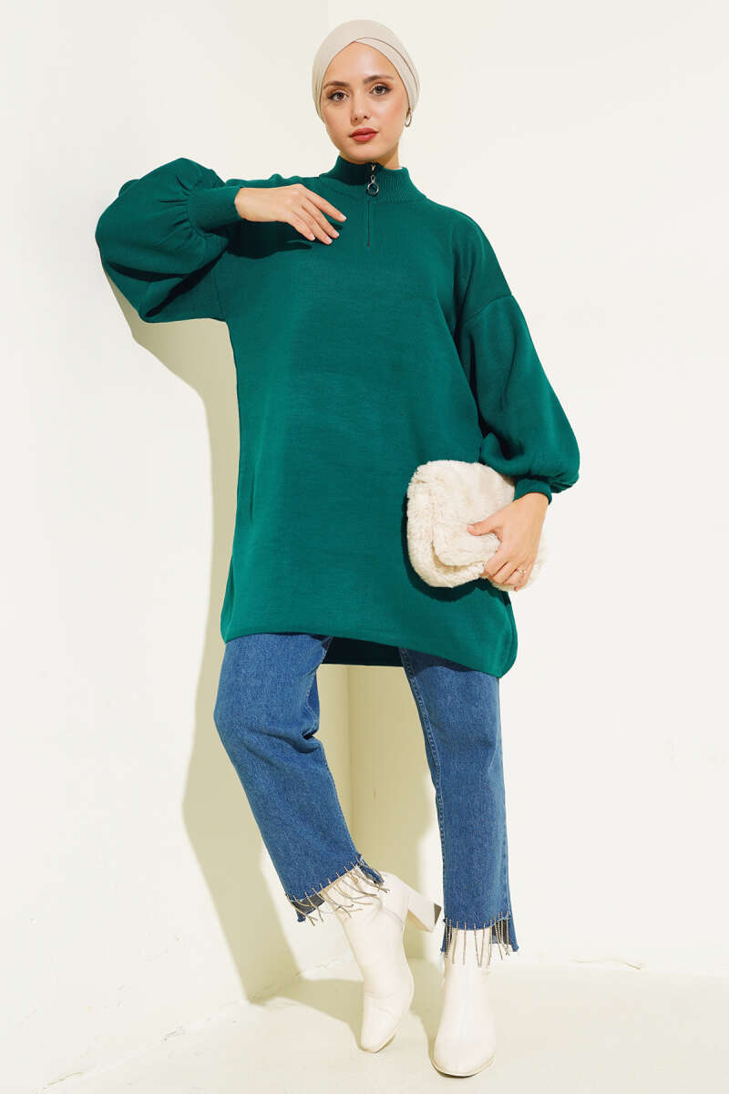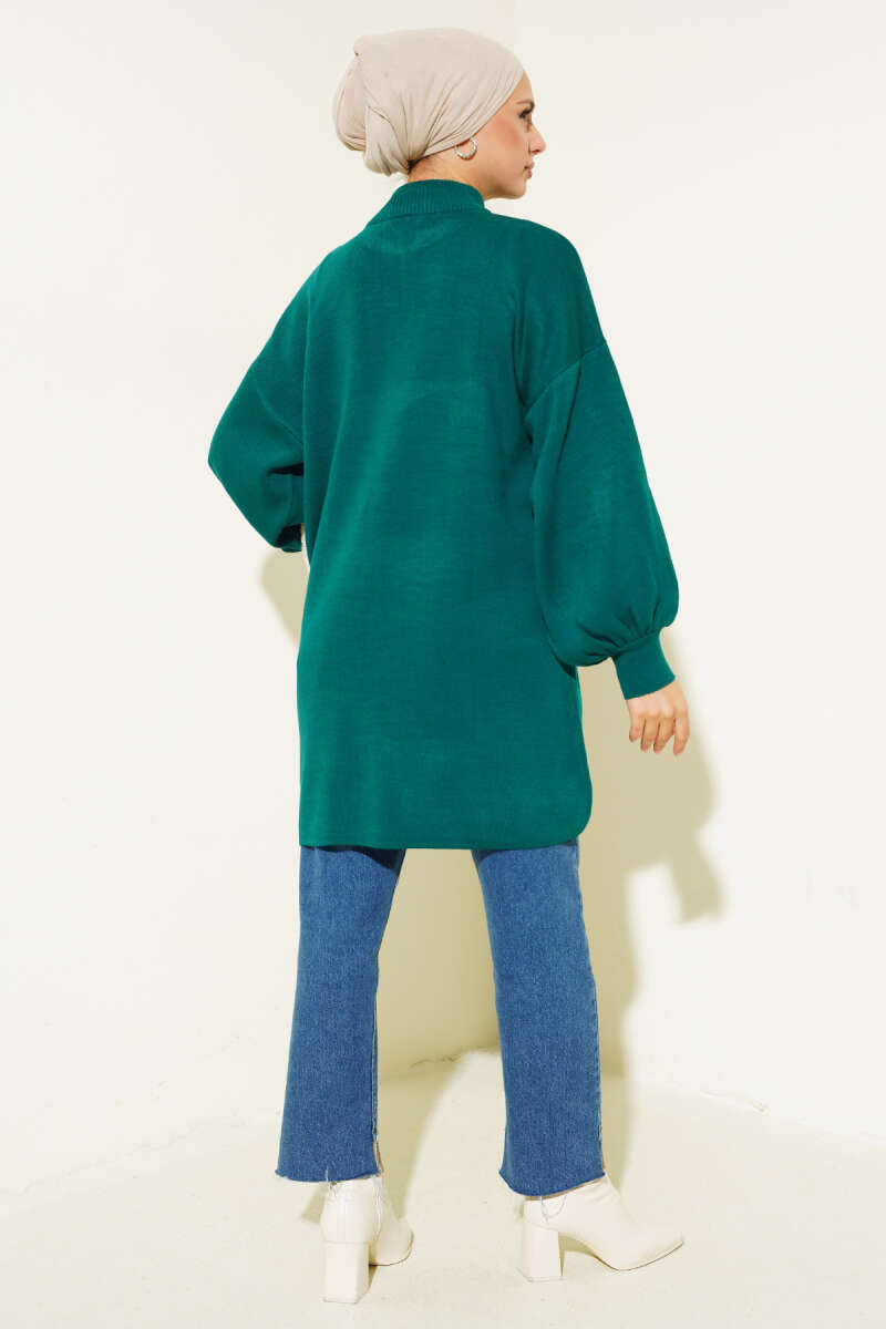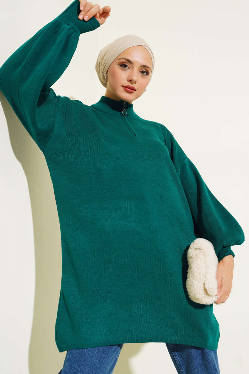 Ribana Görünümlü Triko Tunik Yağ Yeşili
