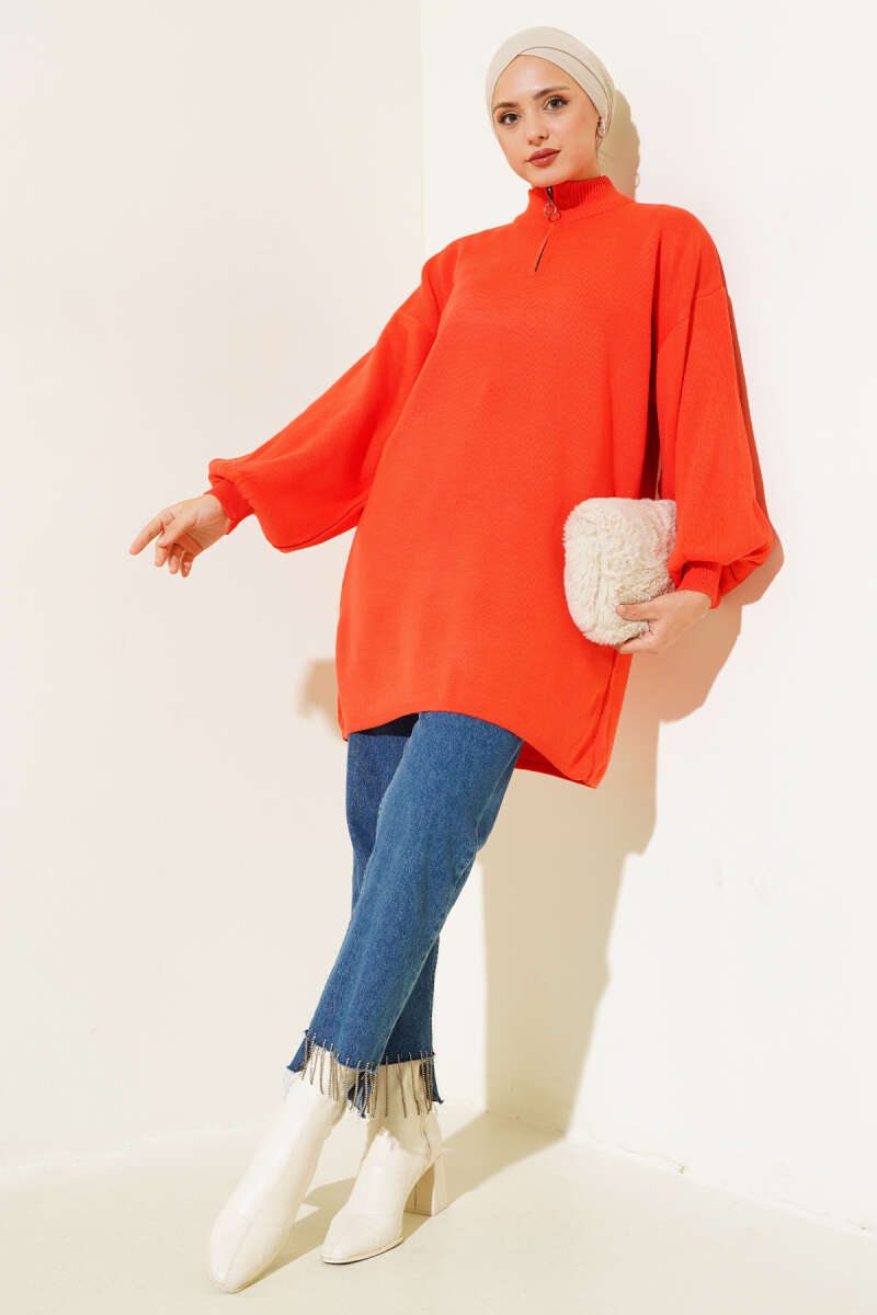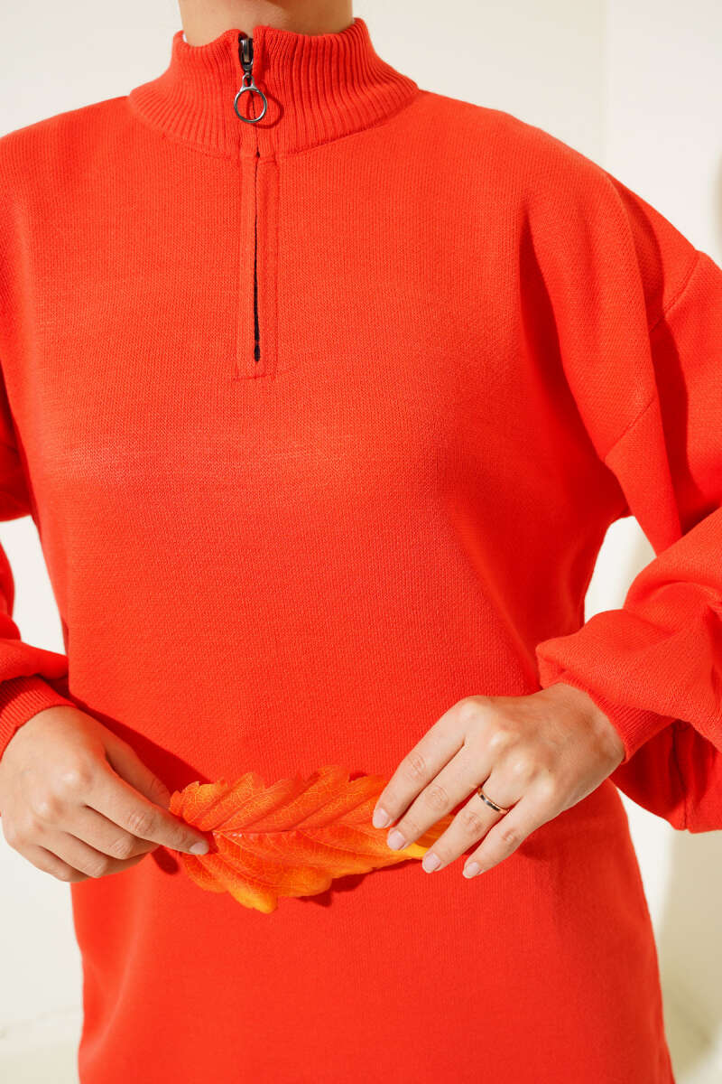 Çizgi Baklava Desen Triko Tunik Zümrüt