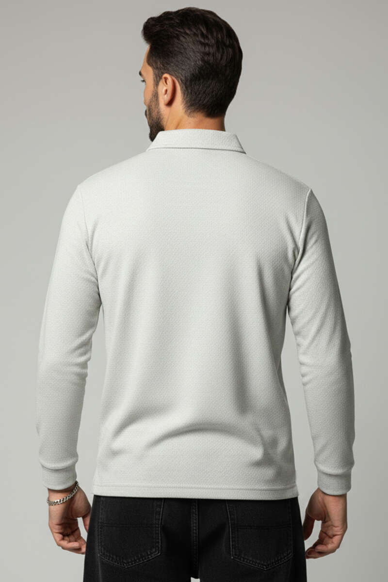 Dik Yaka Yarım Fermuar Erkek Sweatshirt Beyaz