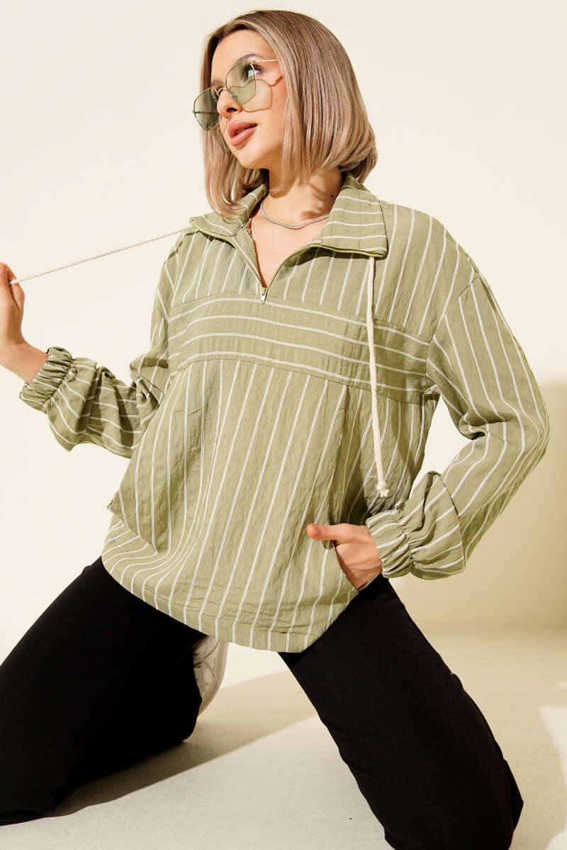 Şerit Fırfırlı Balıkçı Yaka Bluz Siyah