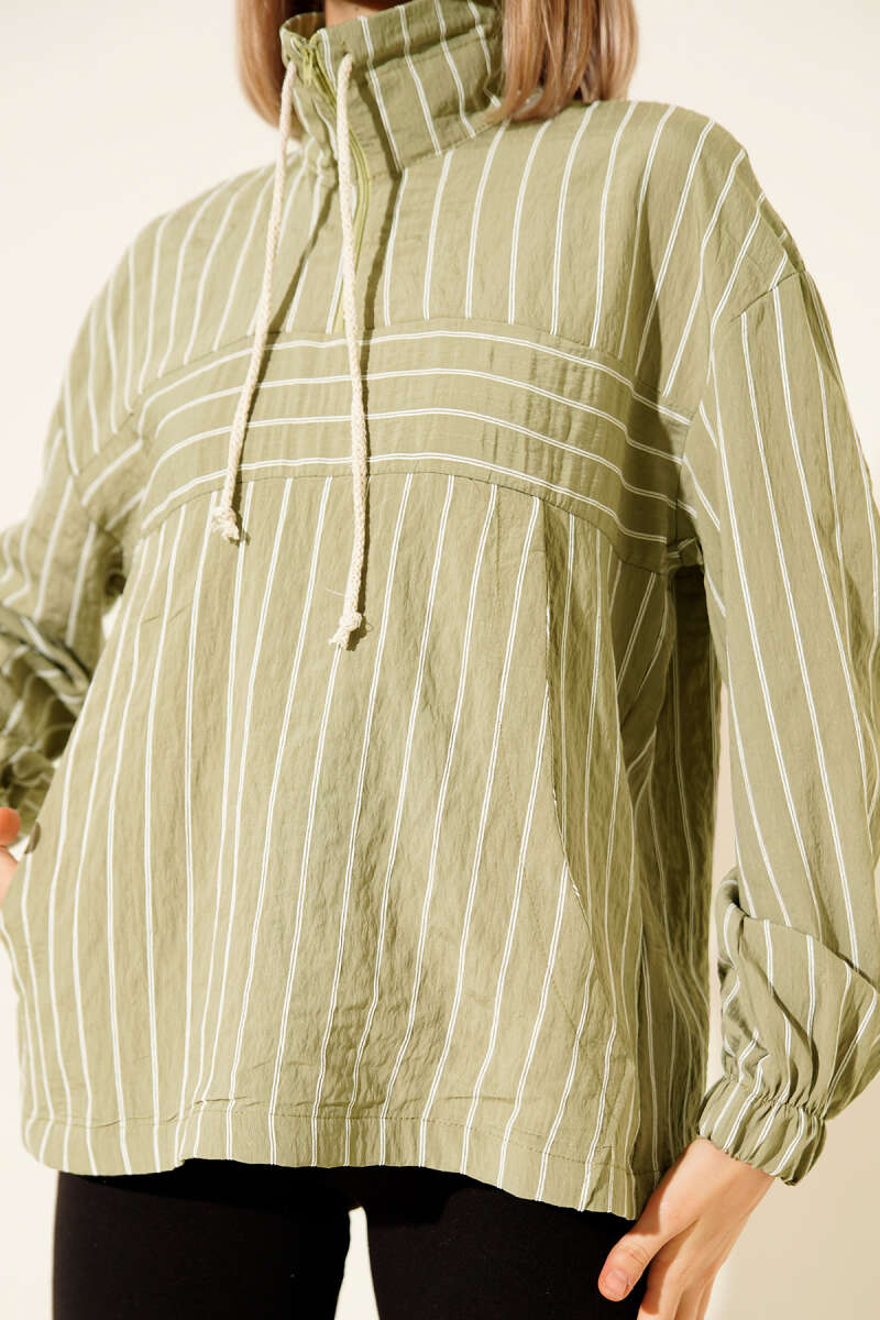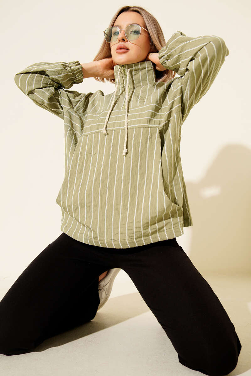 Bel Tünelli Lastikli Peluş Hırka Kestane