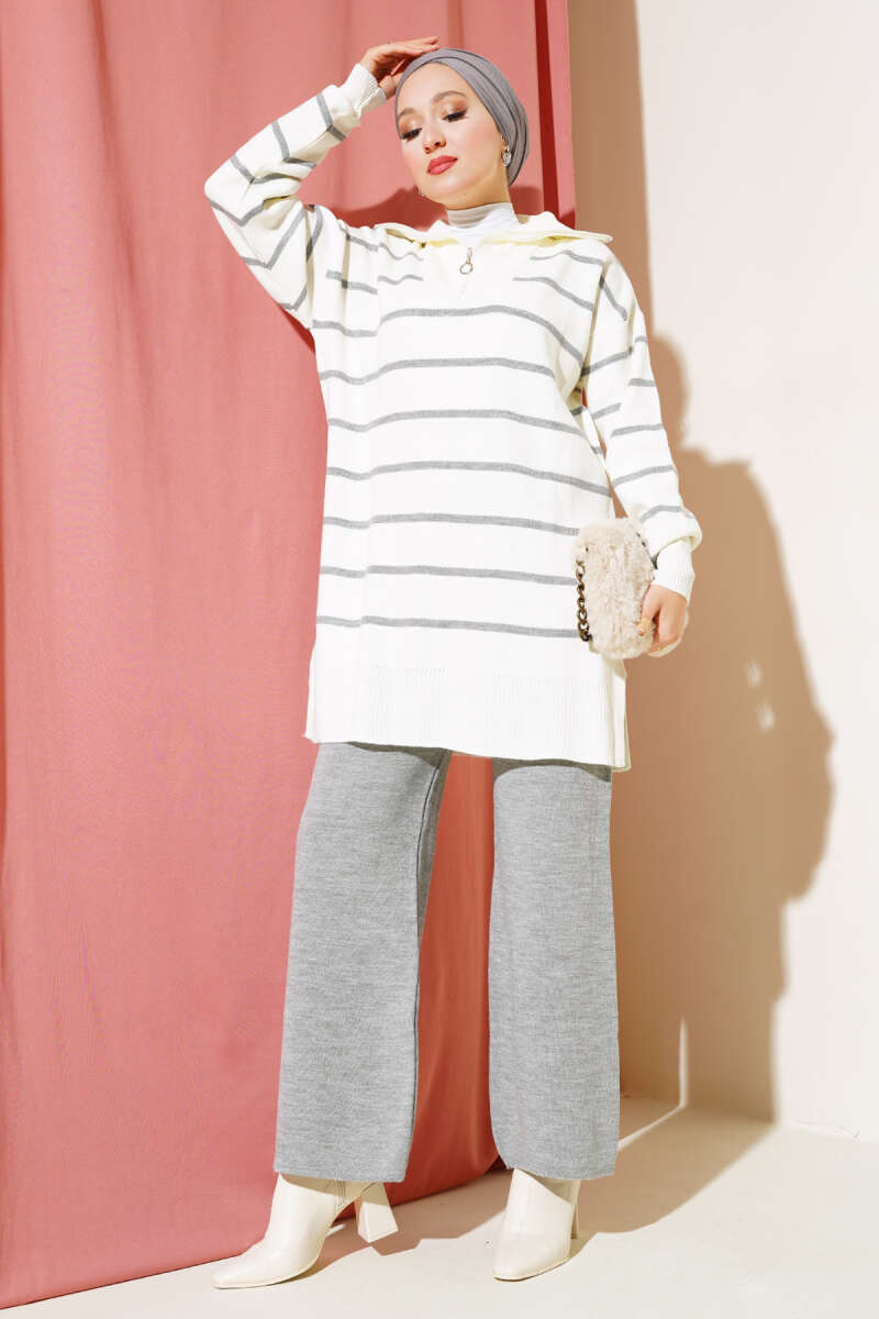 Balıkçı Yaka Fitilli Triko İkili Takım Ekru