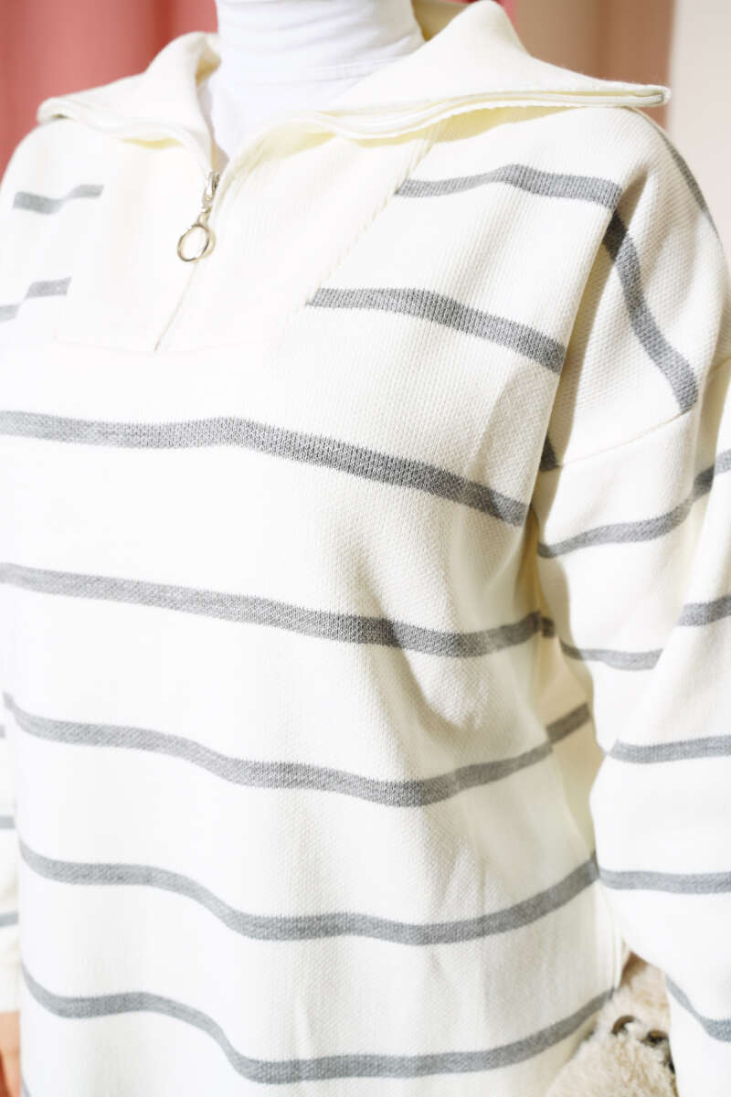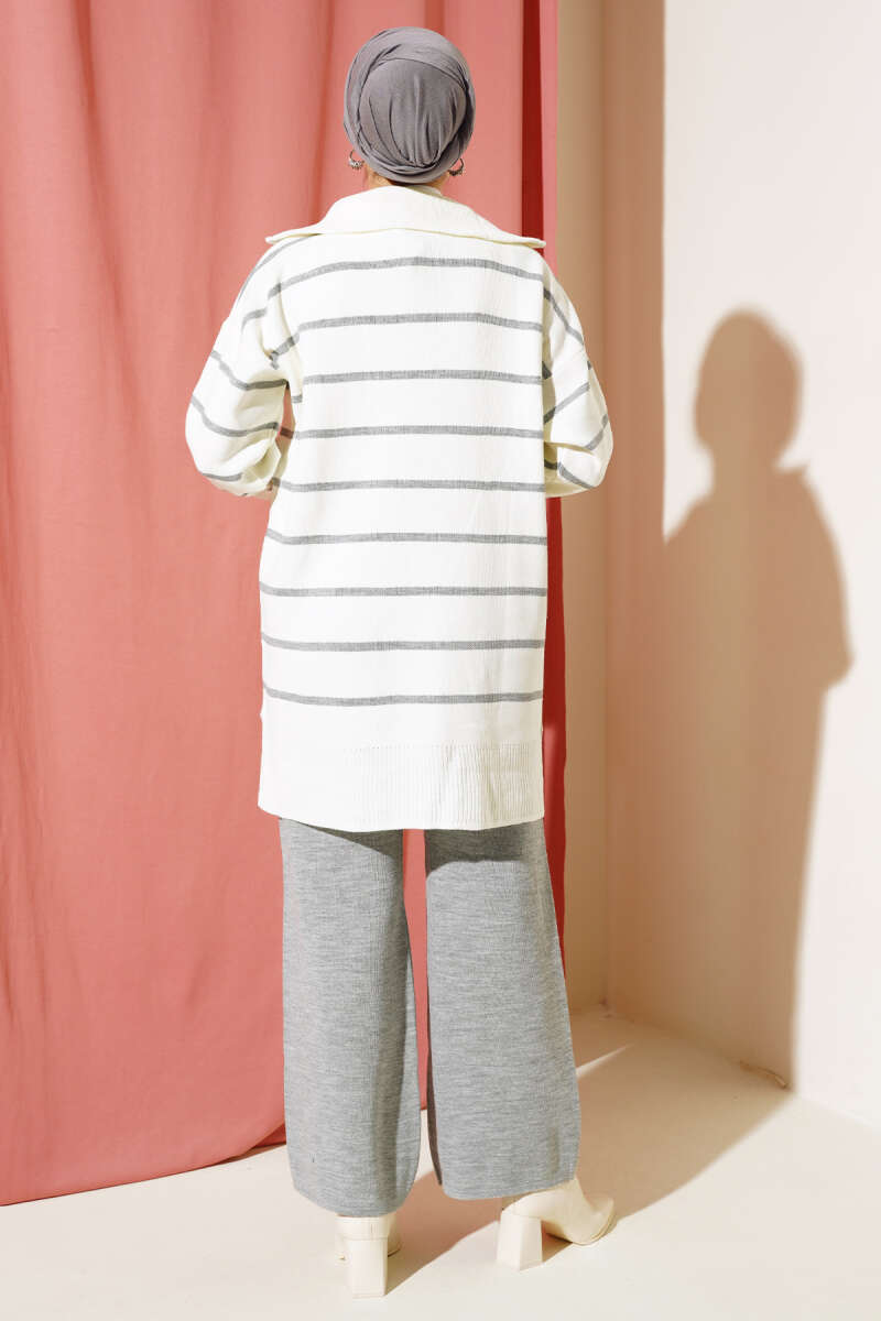 Yaka Fermuarlı Çizgili Triko Takım Siyah