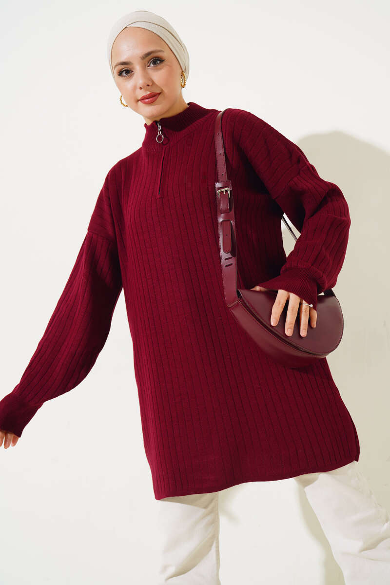 Düşük Omuz Salaş Triko Tunik Turkuaz
