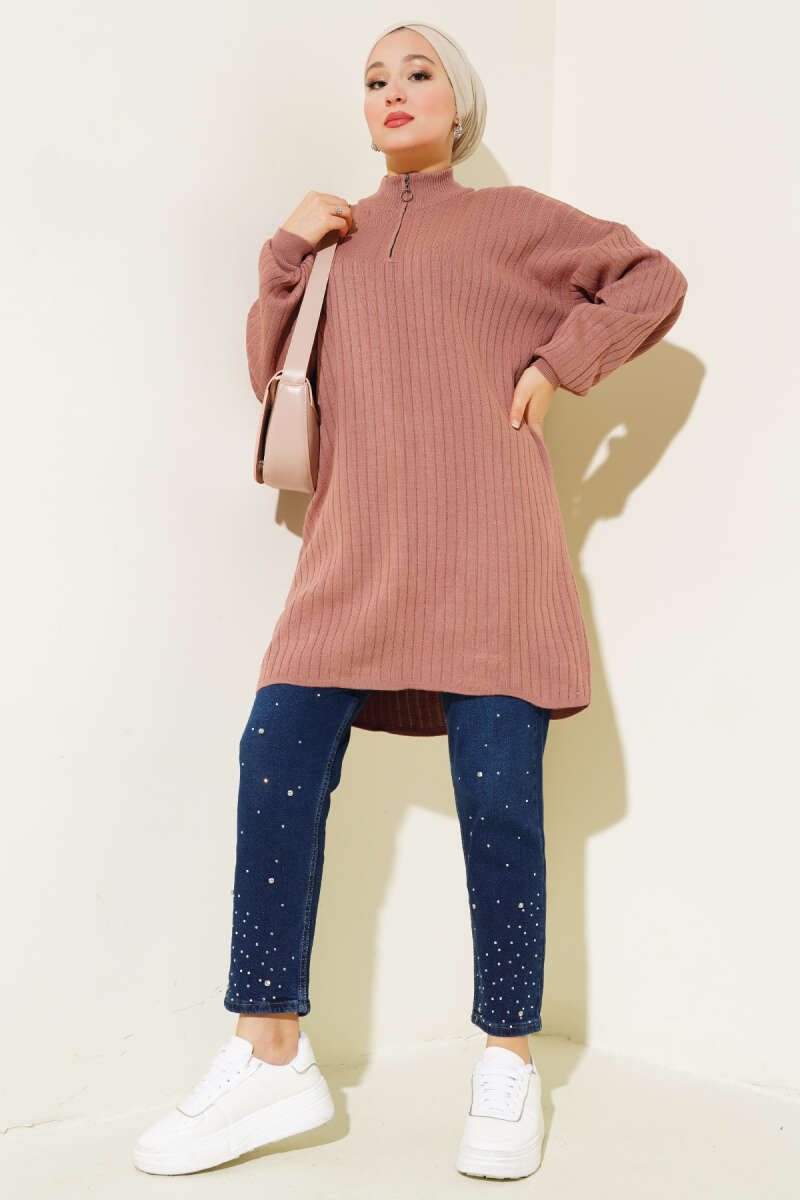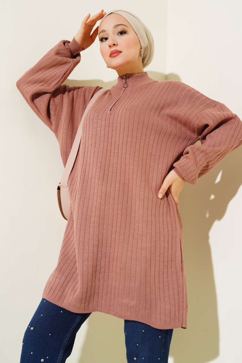 Çizgi Baklava Desen Triko Tunik Vizon