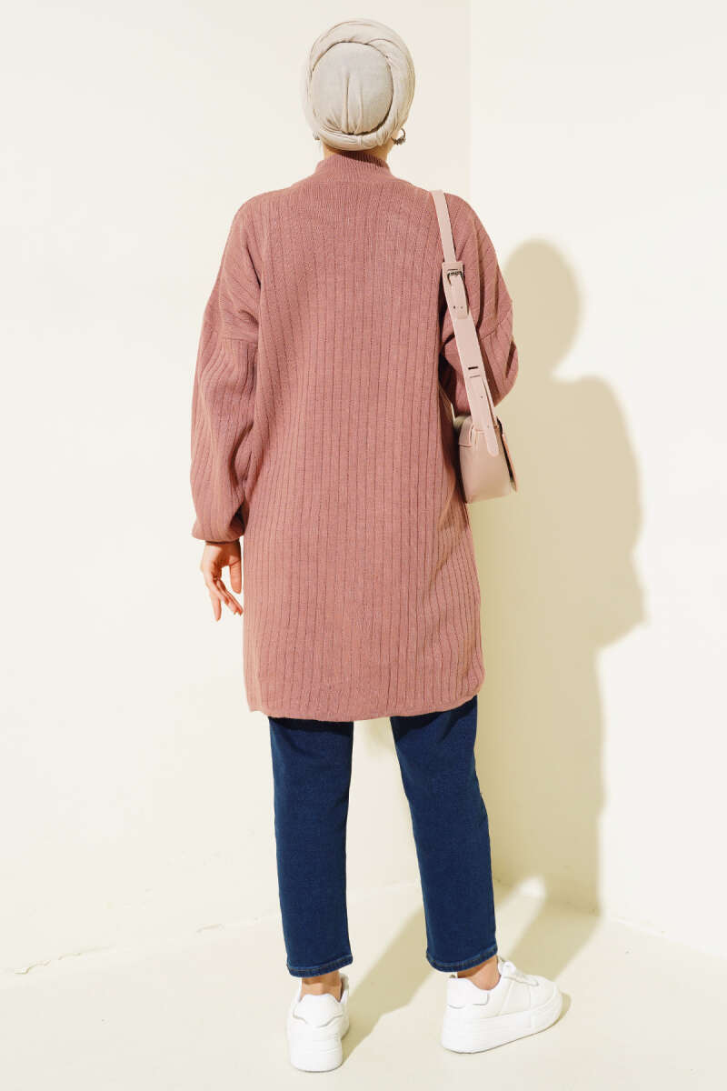Basic Çift Cepli Uzun Triko Hırka Bej