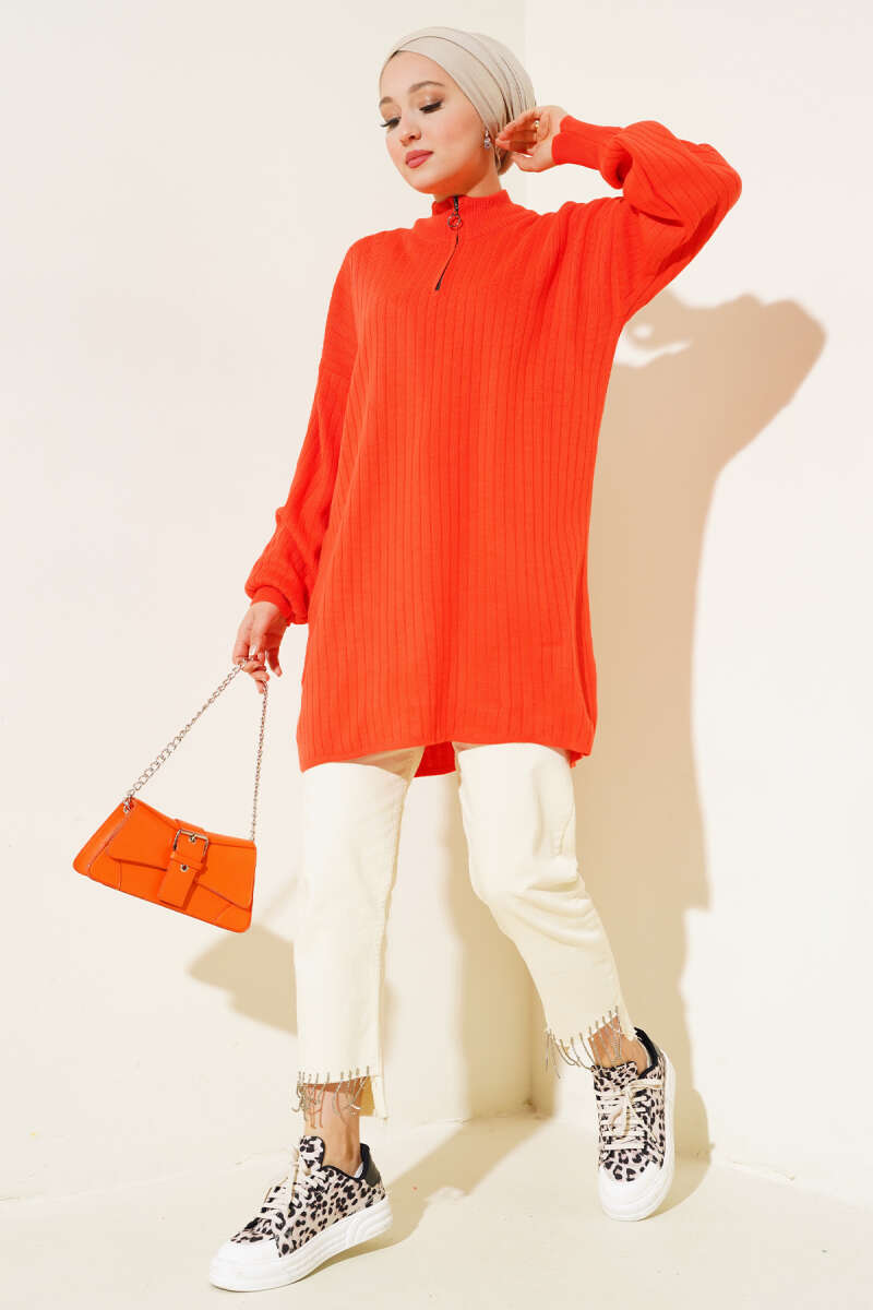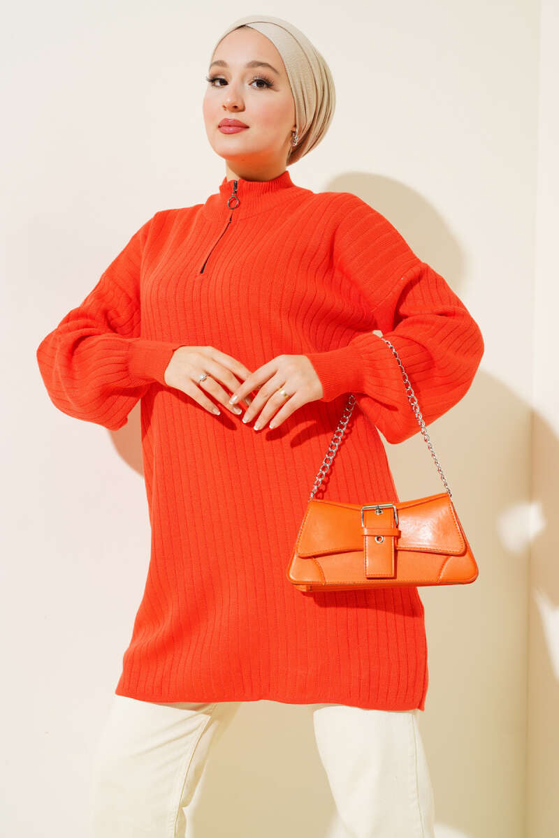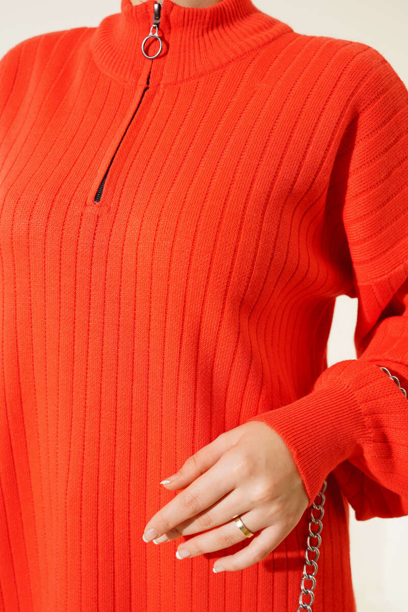 Çizgi Baklava Desen Triko Tunik Yağ Yeşili