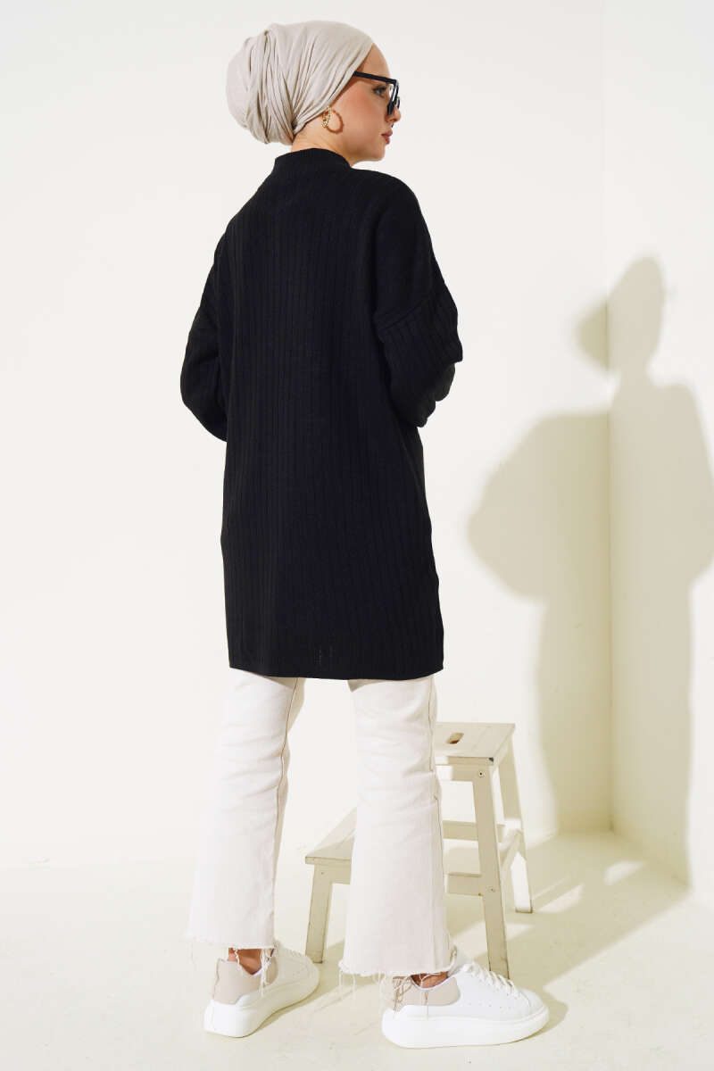 Basic Bisiklet Yaka Düz Triko Tunik Siyah