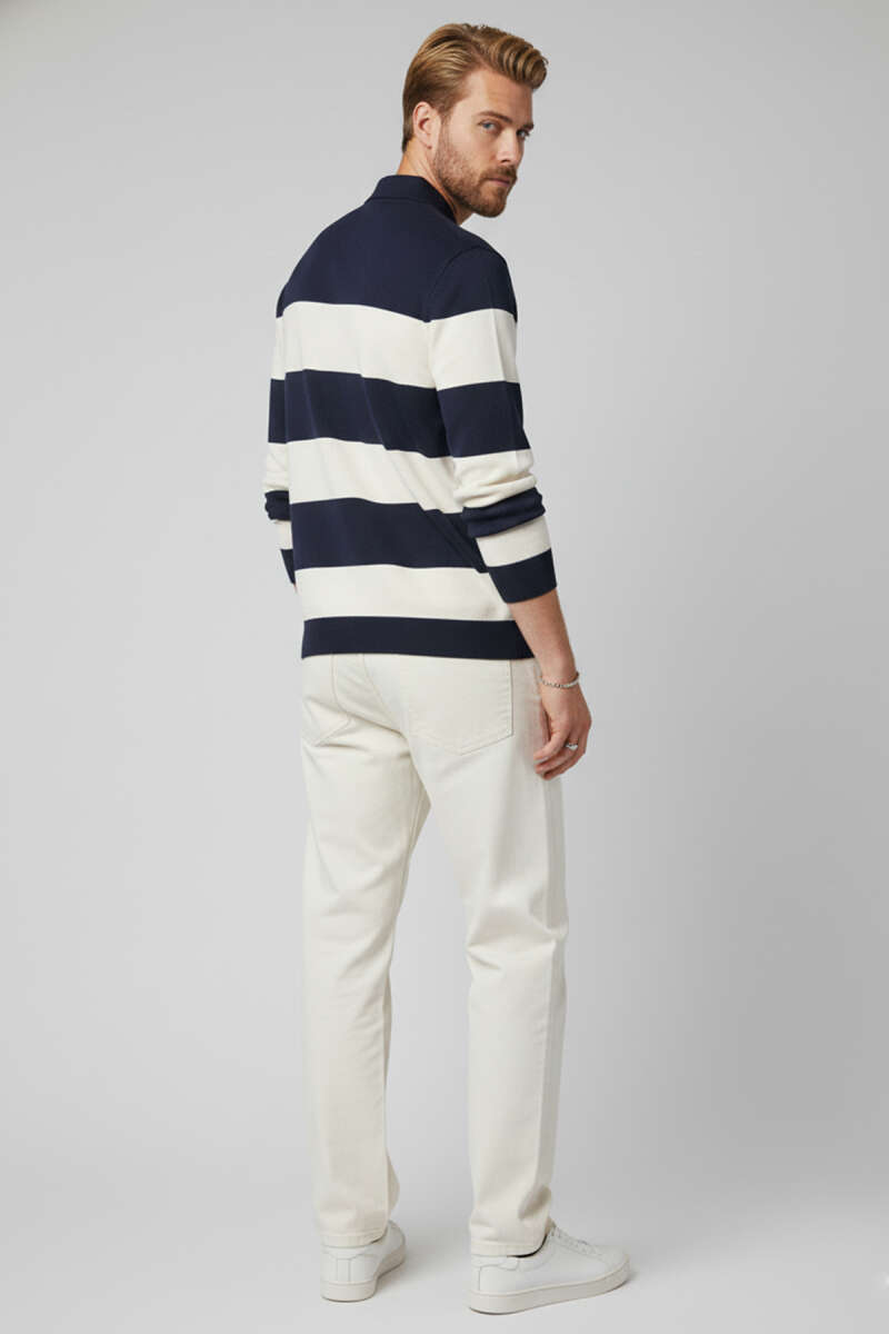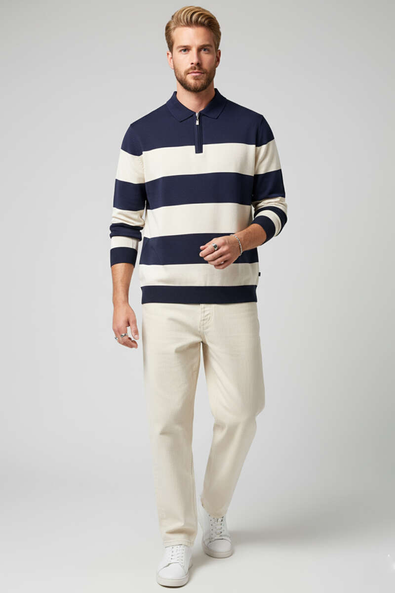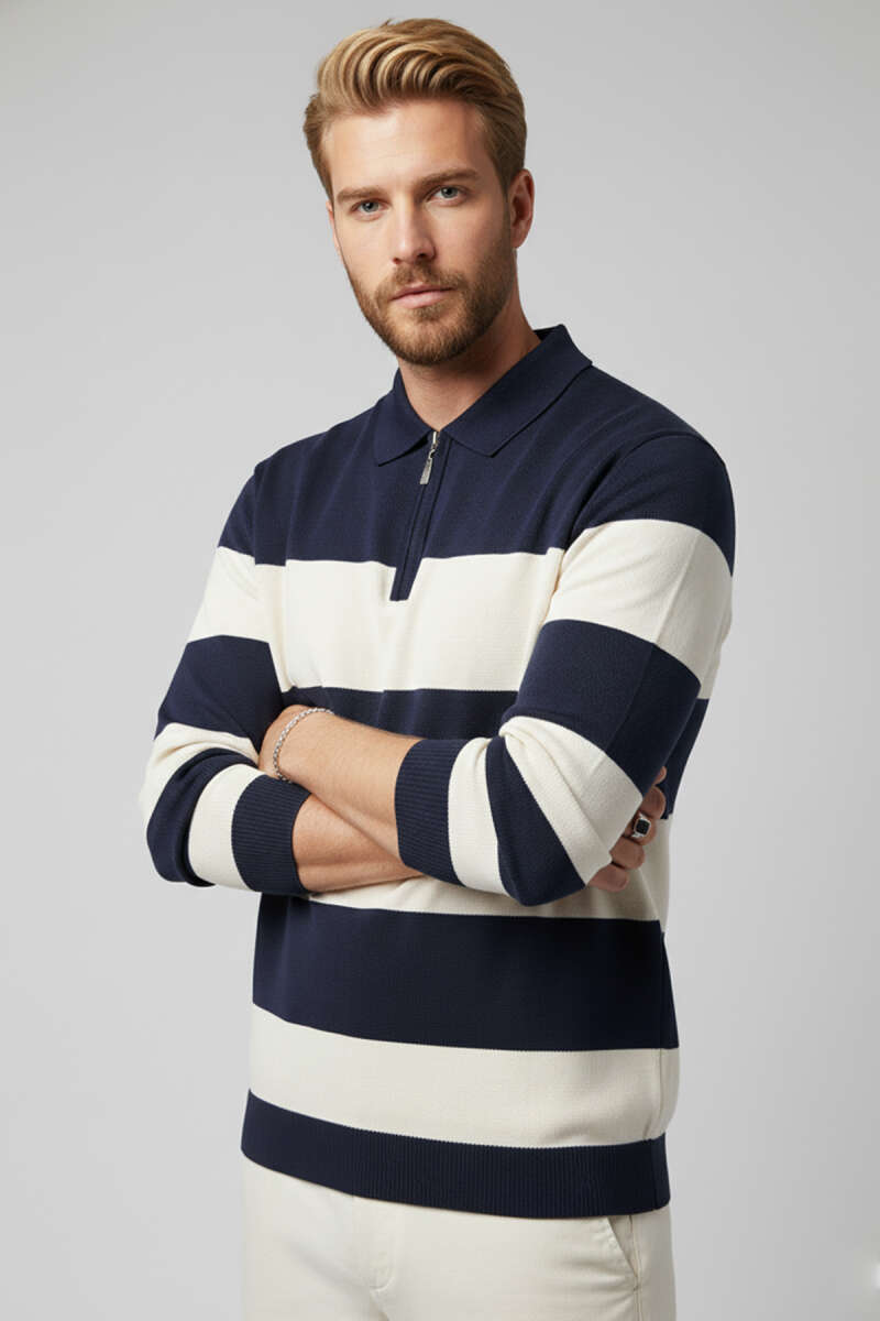 Yaka Fermuarlı Erkek Triko Kazak Lacivert