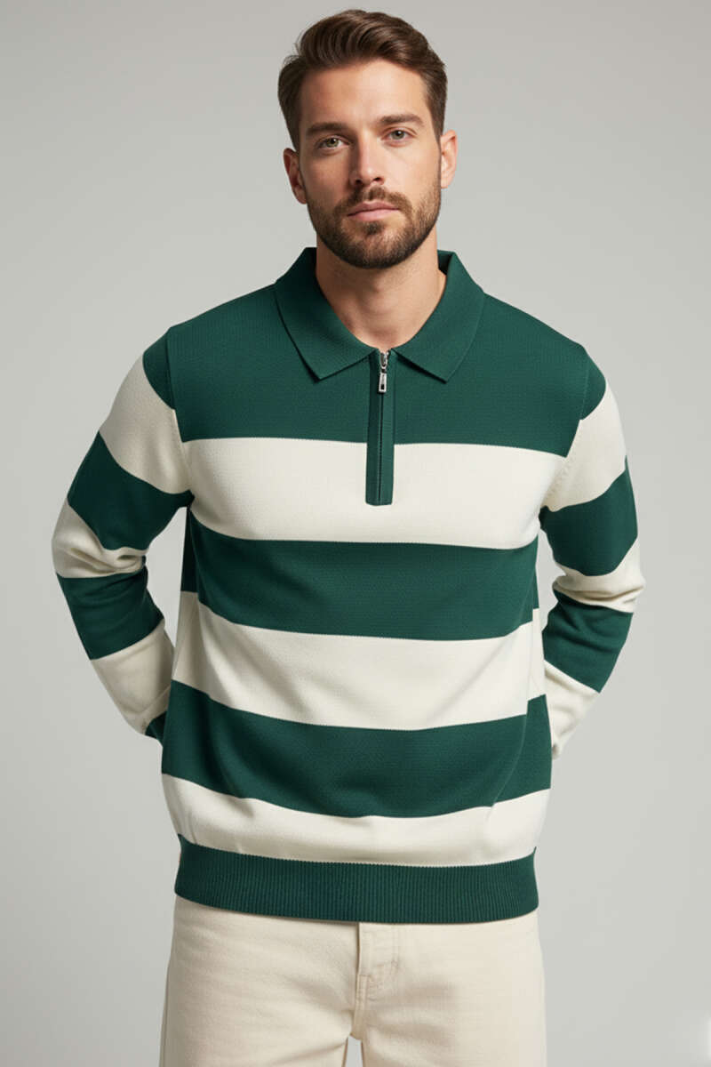Yaka Fermuarlı Erkek Triko Kazak Siyah