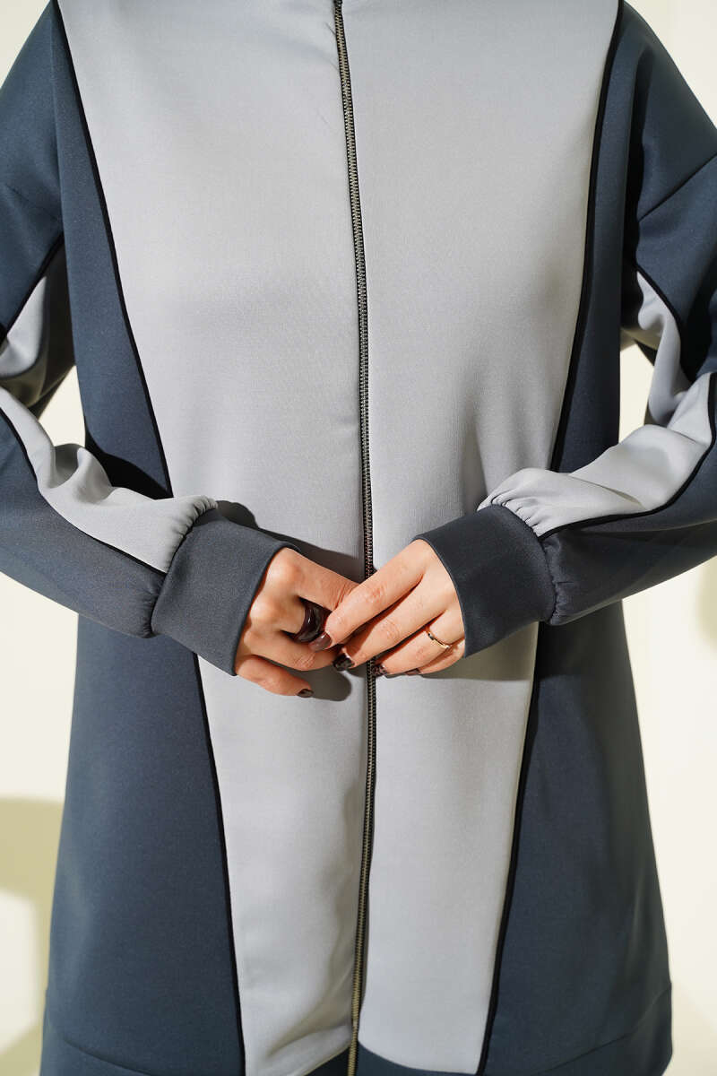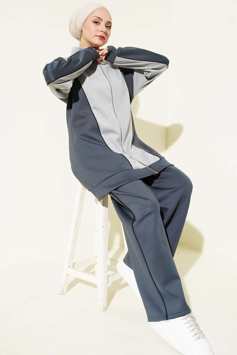 Yaka Fermuarlı Garnili İkili Takım Lacivert