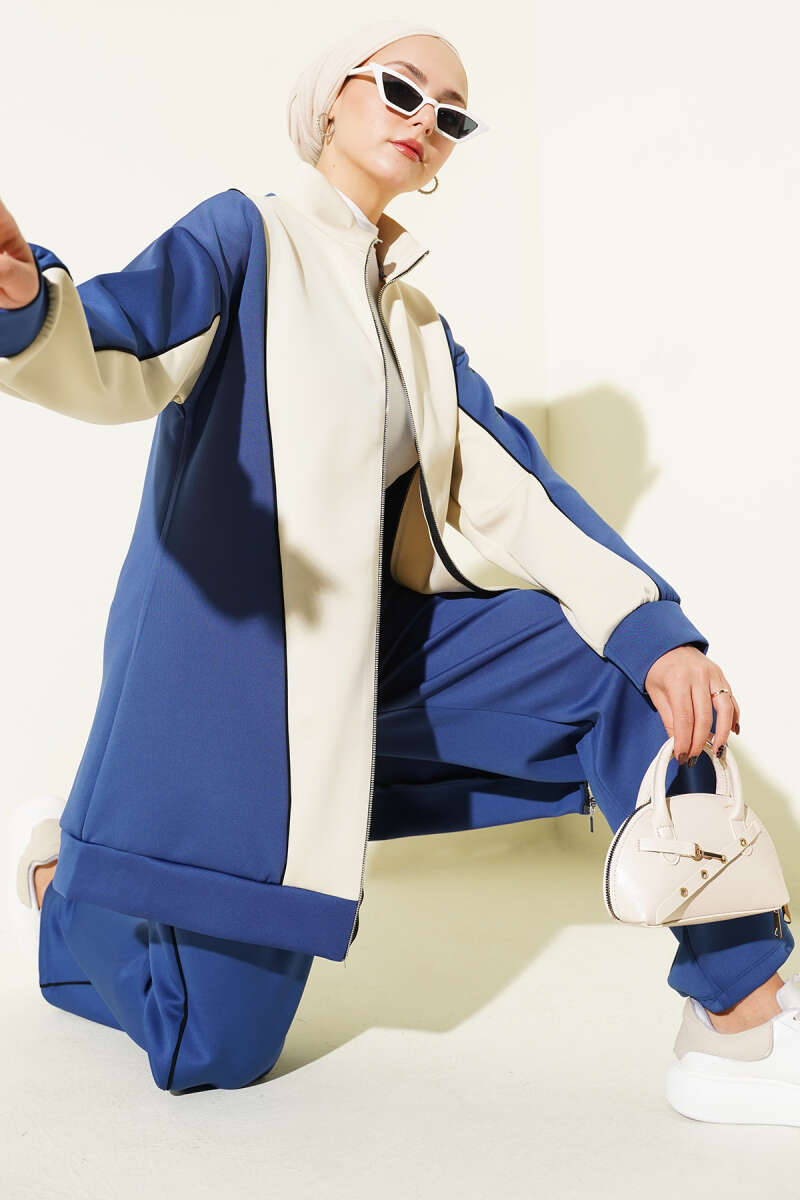 Denizci Yaka Dantelli Tunik İkili Takım Mavi