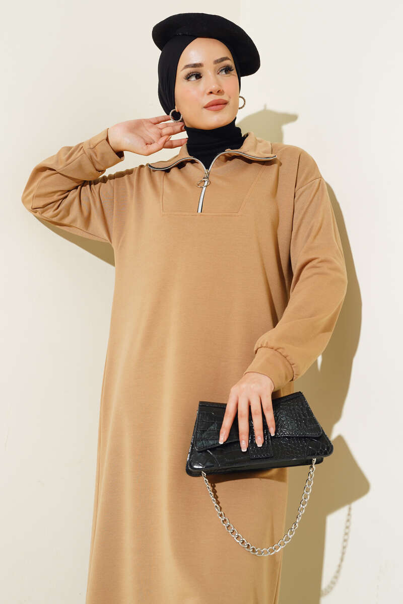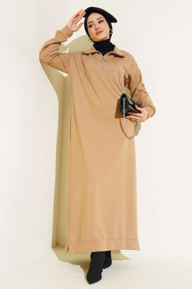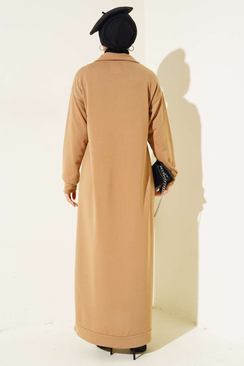 Yakası Bağcıklı Kat Kat Elbise Haki